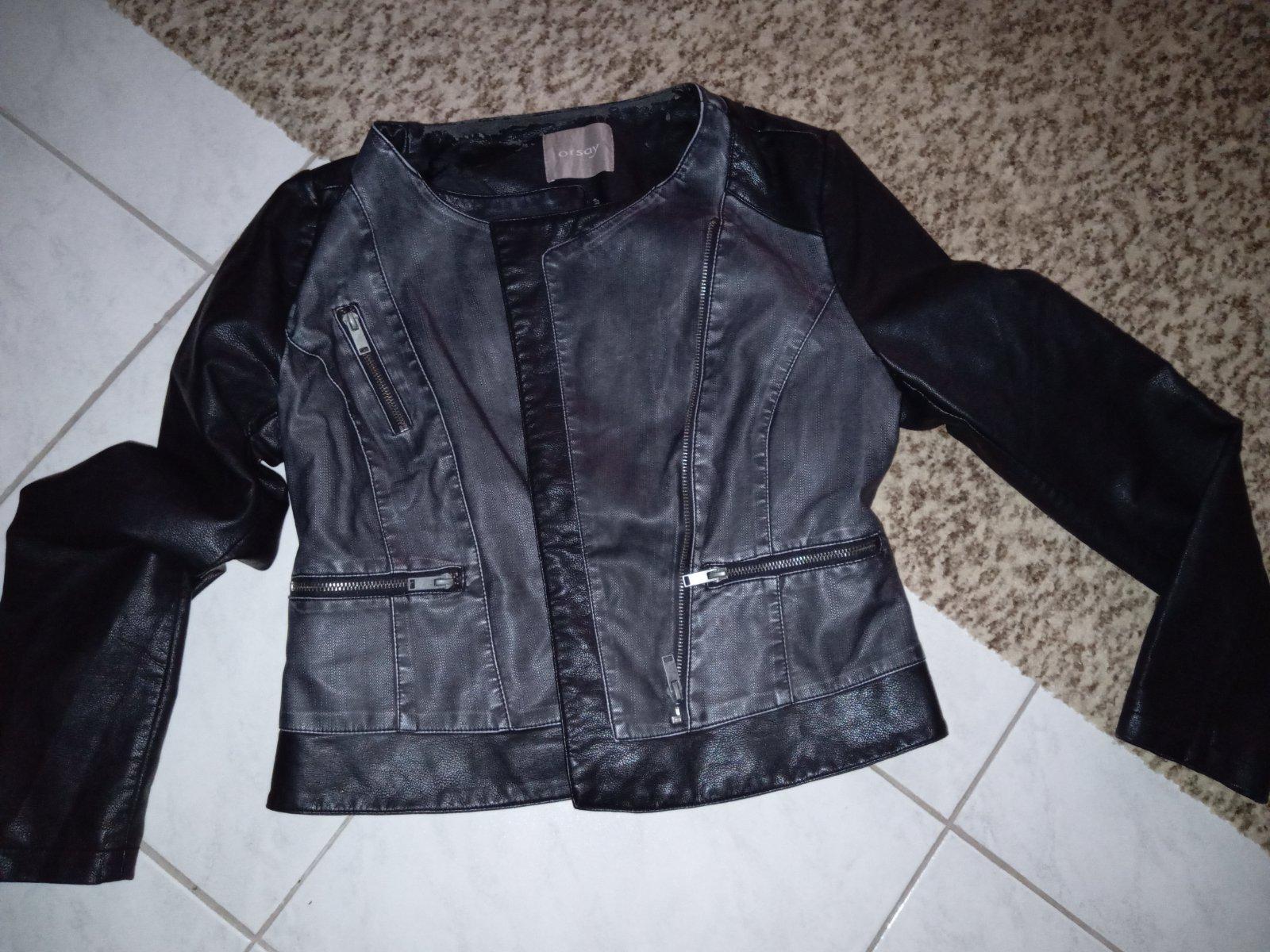 Posúvam čiernu koženkovú bundu s kamienkovými rukávmi. Veľkosť L/XL