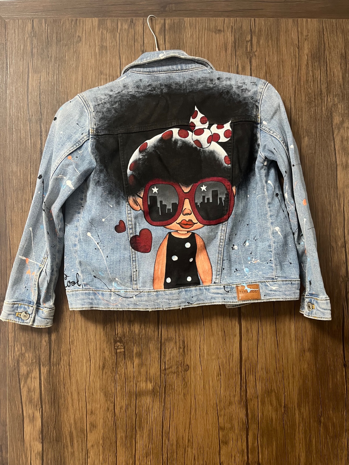 Predám riflovú bundu s ručne maľovaným obrazom na chrbte. Cena spolu s poštovným a balným.