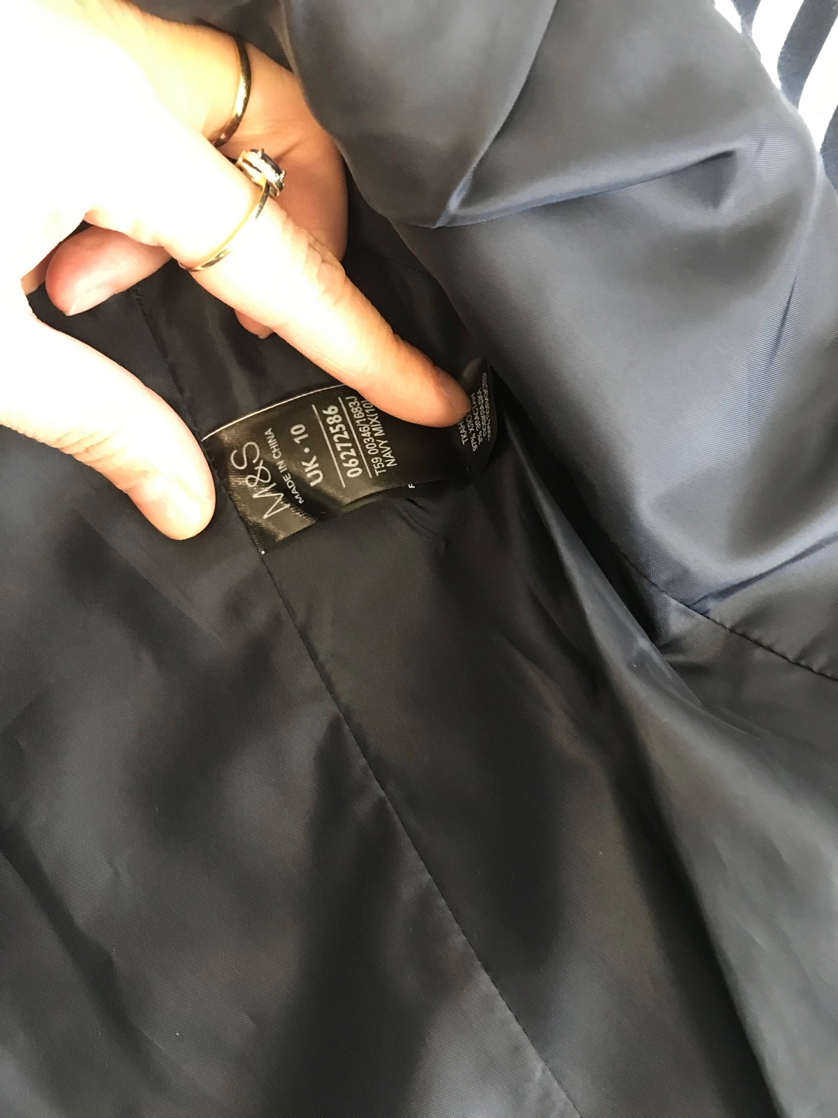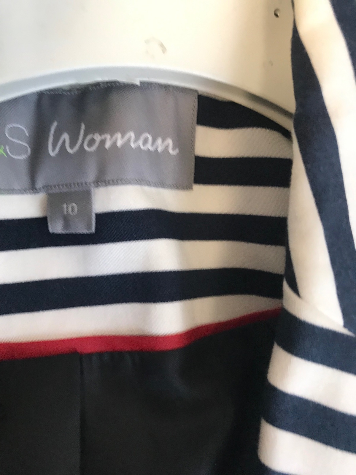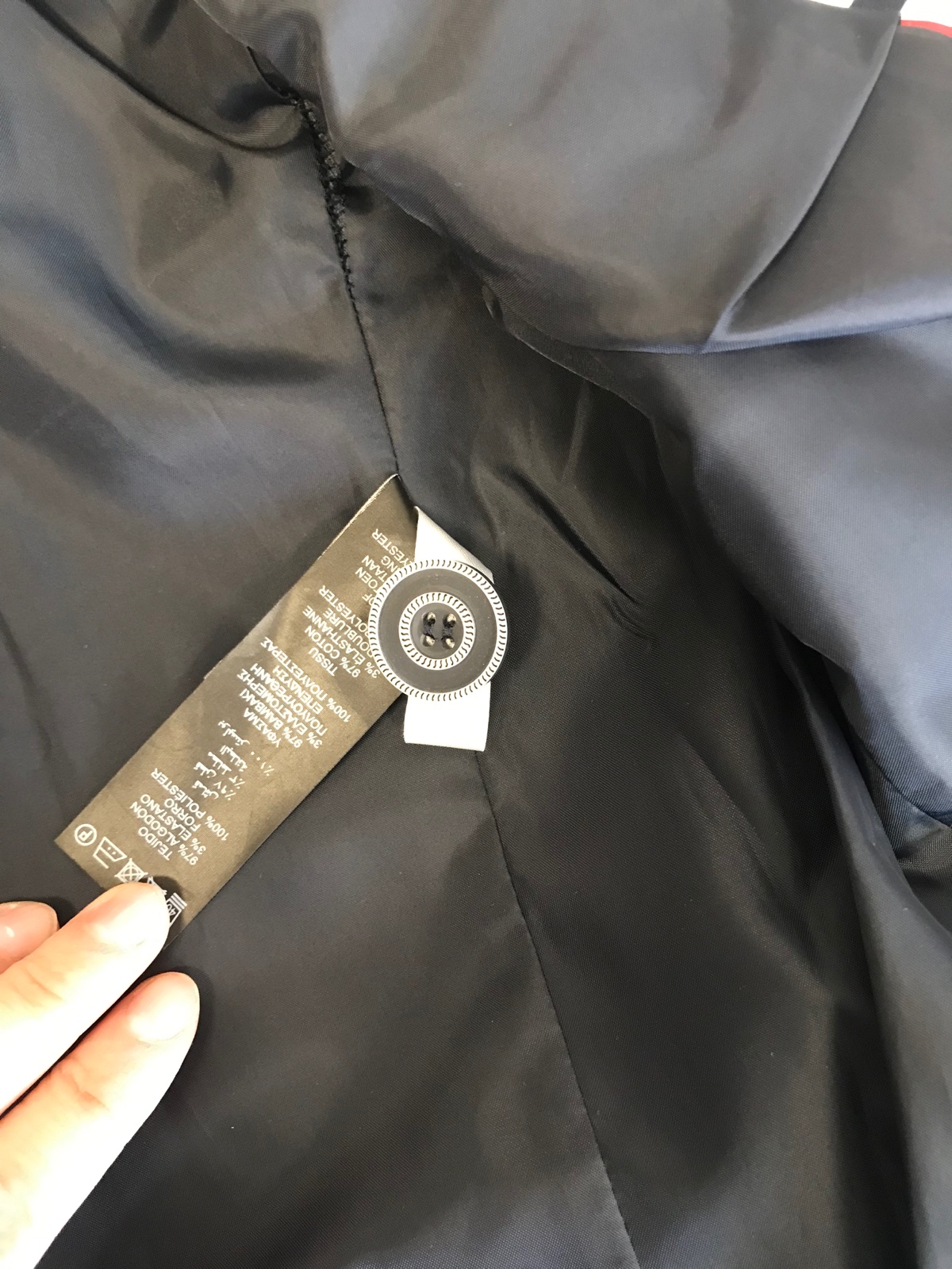 Kabat, ci bundicka je pisana S, ale sedi skor na M az L. Vlozka vnutri pri rukave je roztrhana, sikovna mamina zasije.