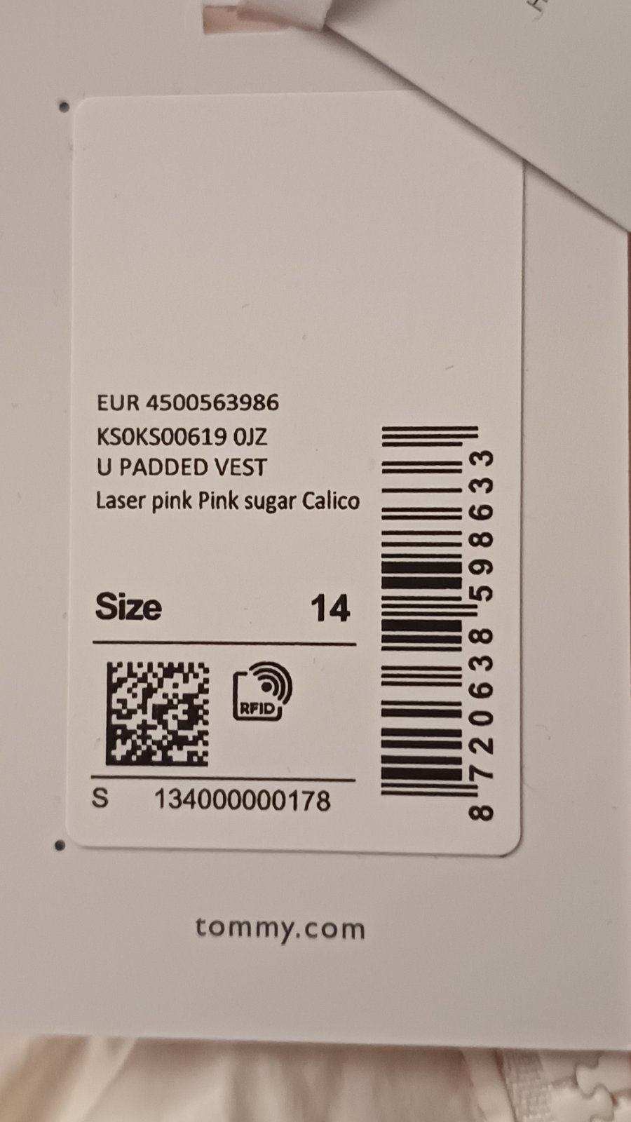 Ponukam vestu zn.Hilfiger,krasnej bielo ruzovej farby,na vek 12 az 14 rokov. Dlzka chrbata je 66 cm a sirka okolo pŕs je 49 cm. Matwrial polyester, hrubsí material, na zips,vpredu male logo znacky Hilfiger.Bez akychkolvek poskodeni,vid visacka,nova. Povod. Cena 79.eur,kupovana v zahranici.