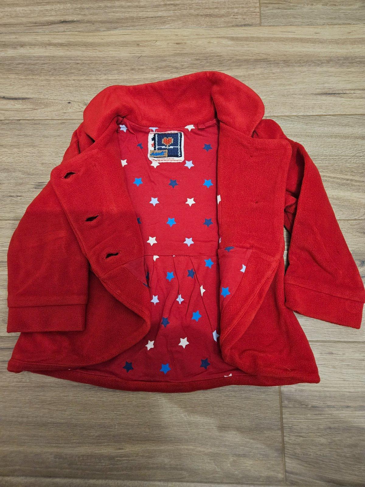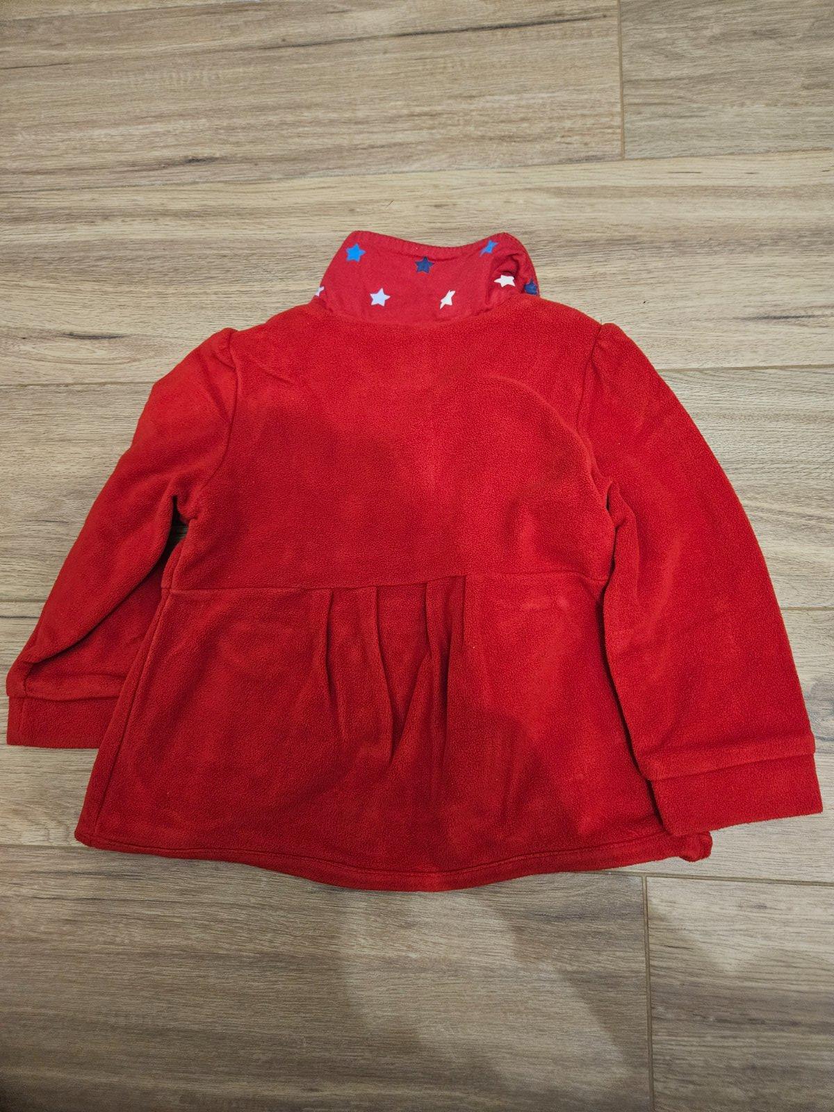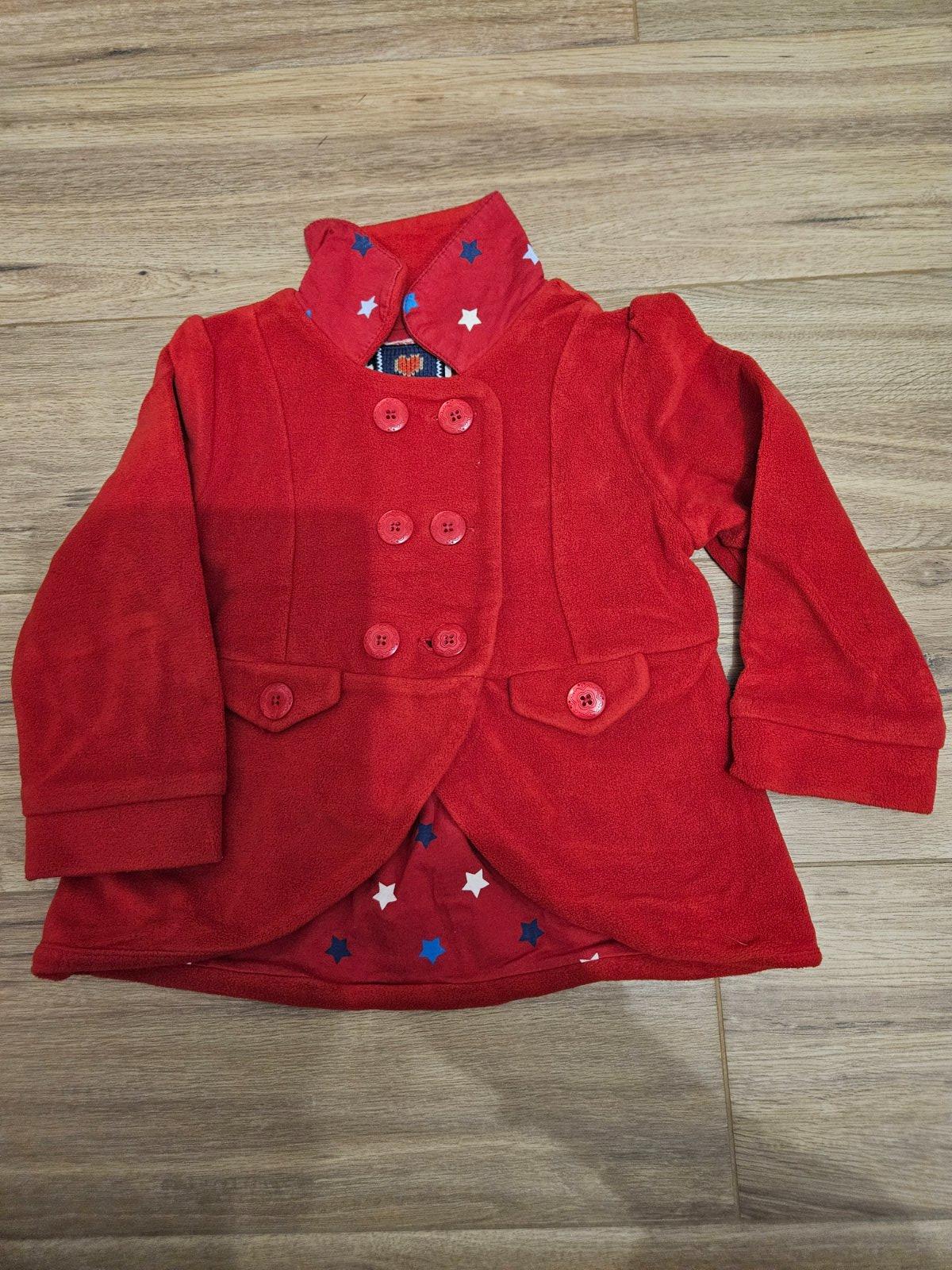 Krasny presivany kabatik vo velmi dobrom stave. Je podsity flisom, ale je tak skor na prechod, nie je velmi hruby. Velkost je uvedena na 2-3roky, ale podla mna je mensi. ROZMERY: dlzka rukavu od ka...