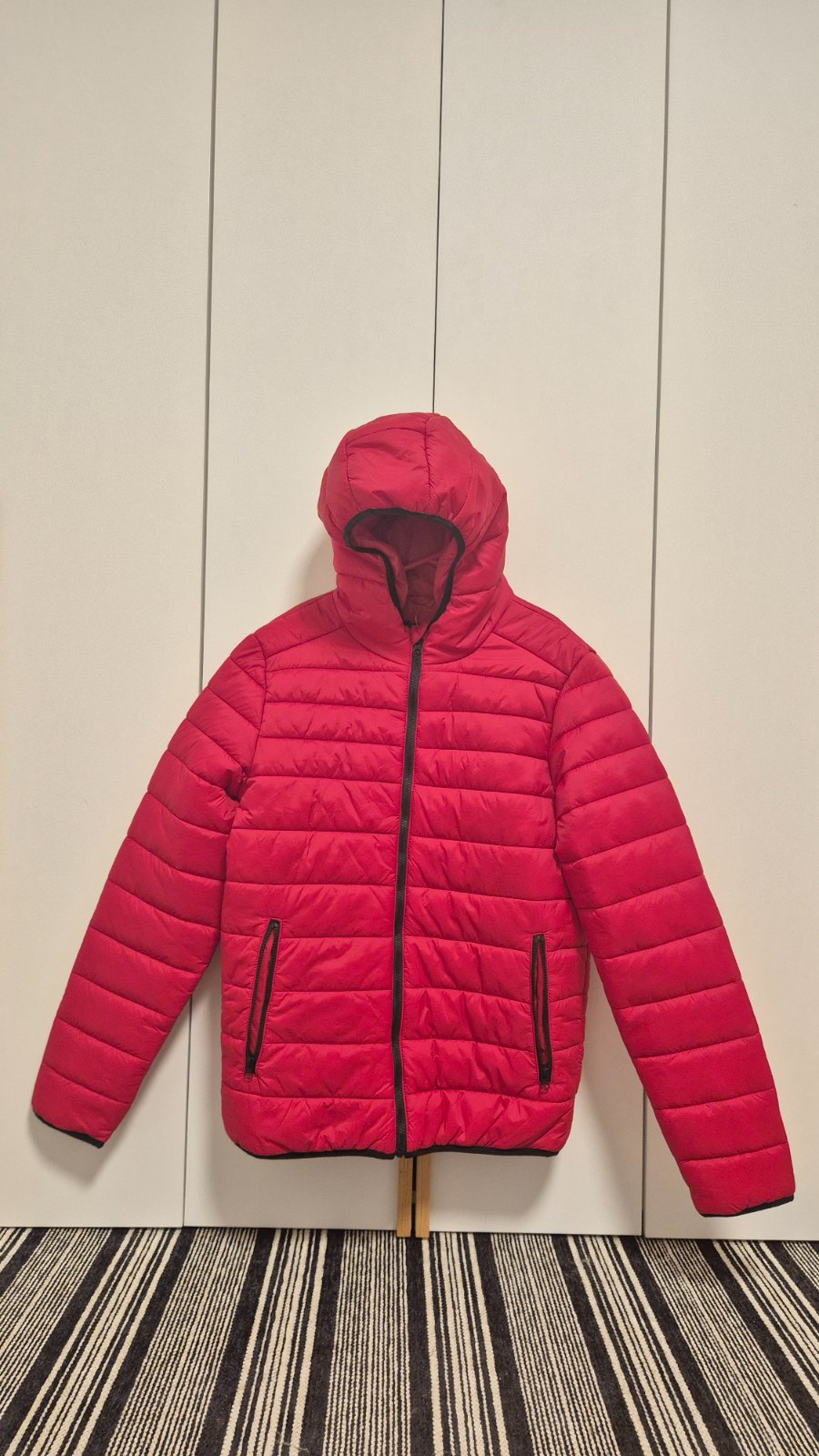 Prijemna prechodna bunda na jesen, mierne zateplena.vyrobca C&A, bavlnena, prijemna, do pasa, obopinatelna kapuca,.dve vrecka. Vel.uved.panska L ,podla mna tak M, na vysku 170-183. Rozmery:D q 76cm...