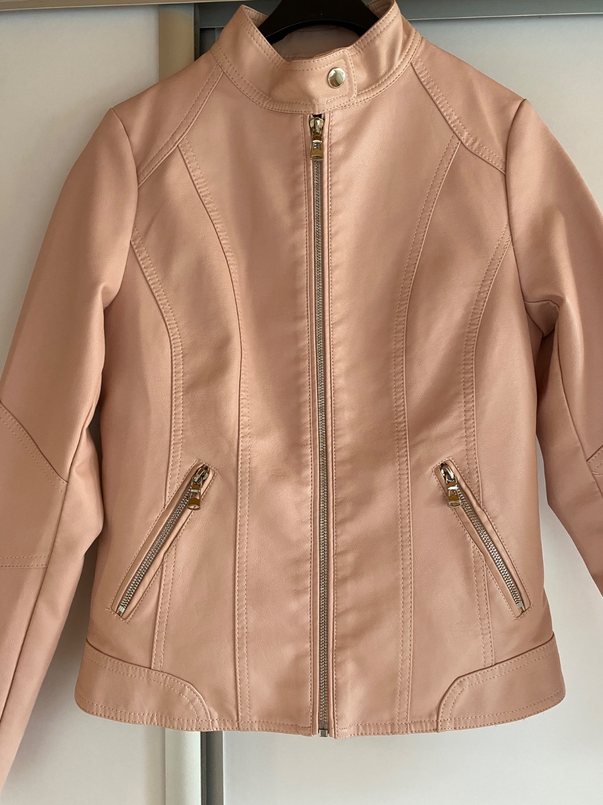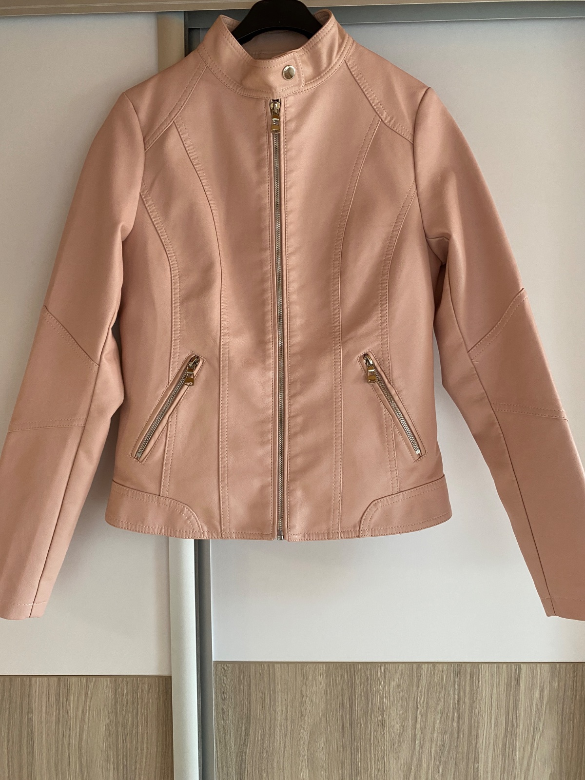 Párkrát nosená. Patenty a zipsy zlatej farby, pekne sadne oblečená. Vhodná na prechod. Odporúčam