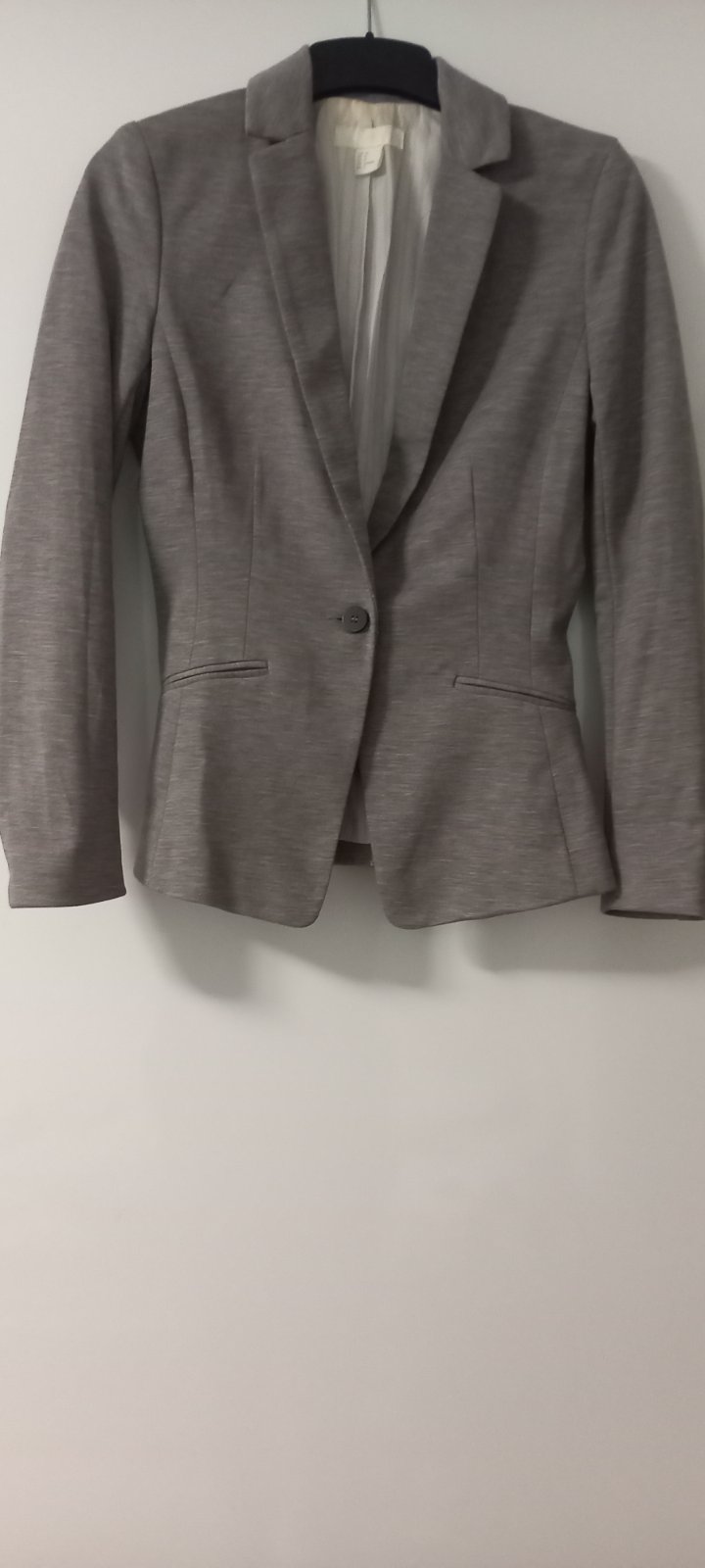 Sako z hrubšej látky, zapínanie na gombíky. Vhodné na prechodné obdobie jar/jeseň. Dĺžka saka cca 68cm. Veľkosť 34 - XS / S. Sako bolo nosené, je bez poškodenia.