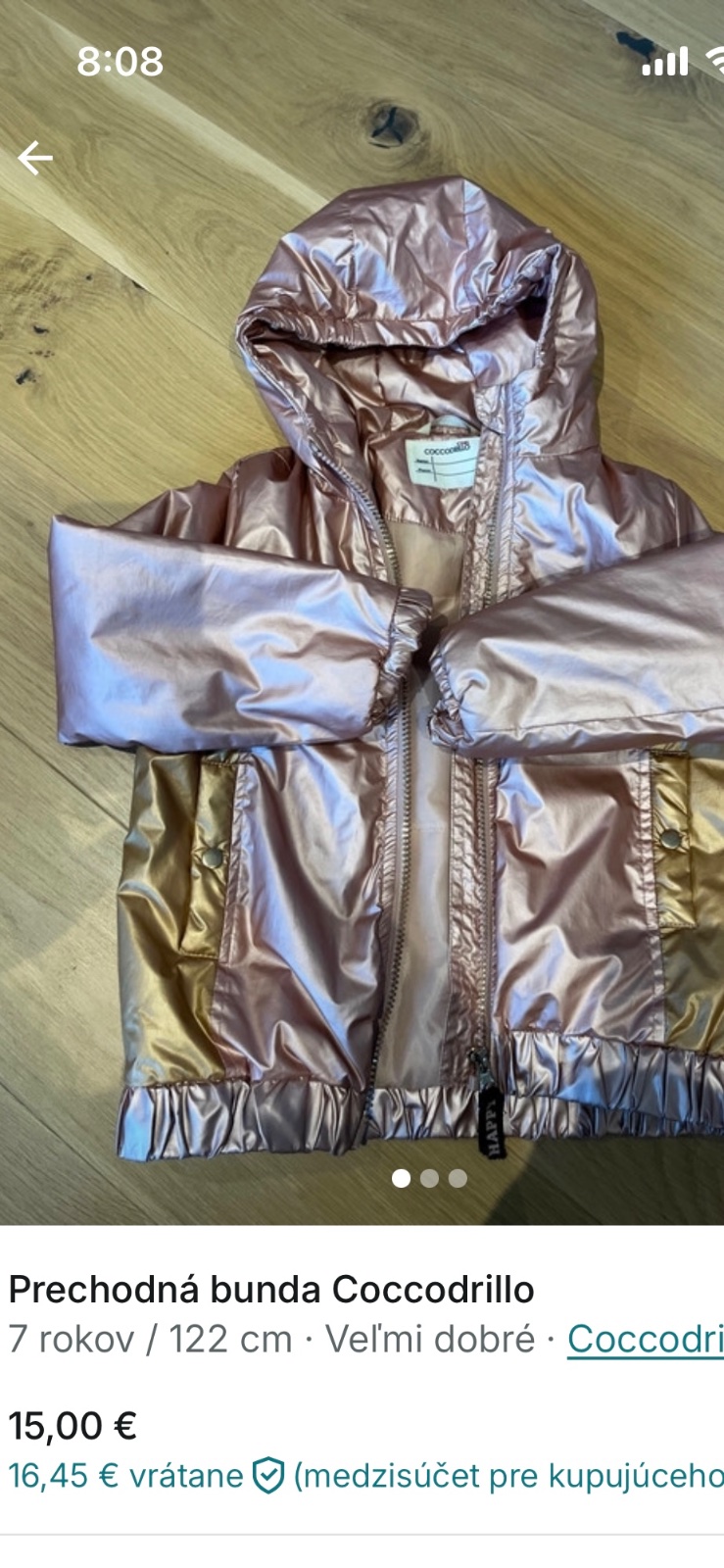Prechodná bunda, mierne vatovaná na chladnejsiu jeseň či jar. Bez poškodenia.