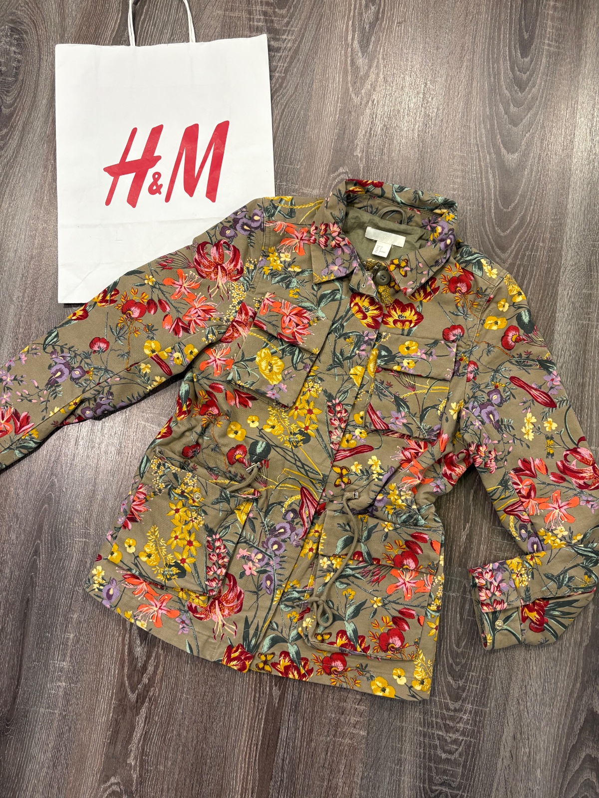 03.H&M krasna damska prechodna bundicka,pise velkost 34 no sedi na XS-S ,krasna farebna kombinacia.Dlzka je 66cm,dlzka rukava od krku je 70cm a sirka v podpazusi je cca 44x2cm.V pase si ju viete upravit a stiahnut ako potrebujete