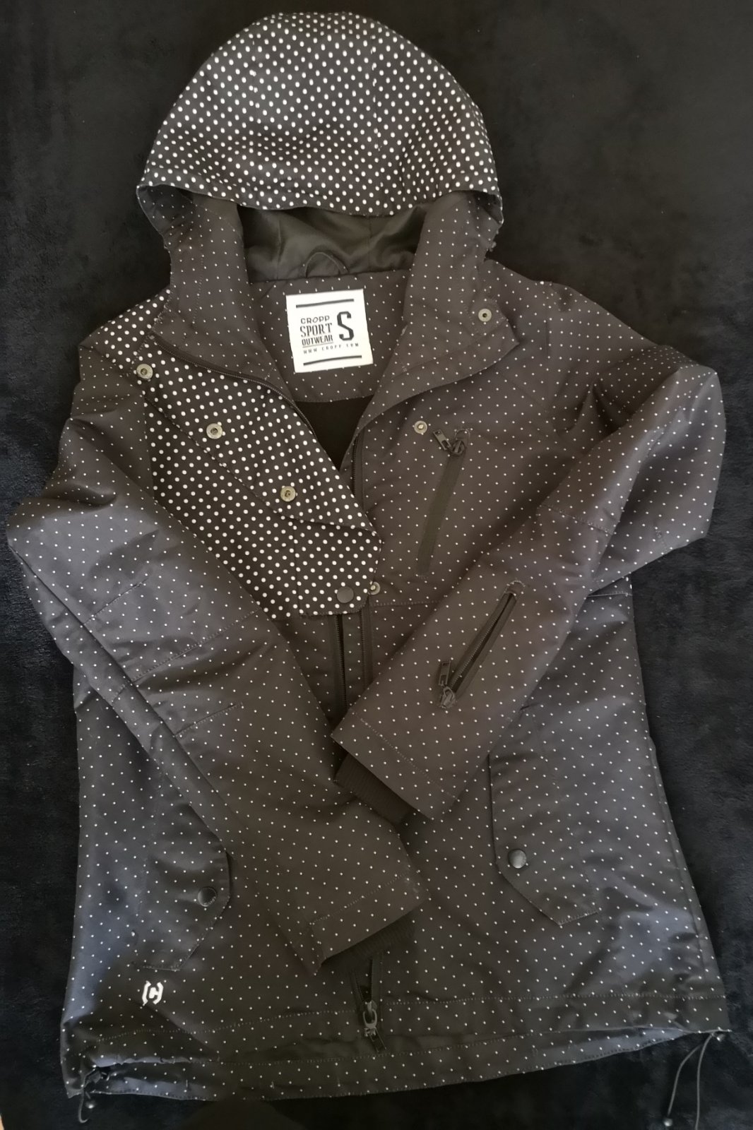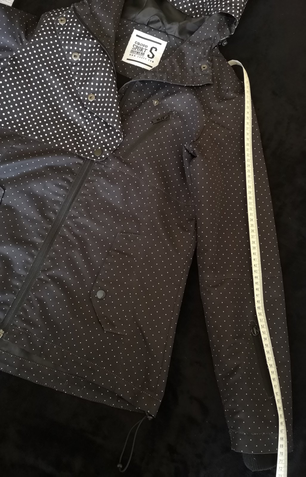 Cierna damska prechodna kozenkova bundicka. Povodna PC 39,90! Cierna bundicka s podsivkou,krasne prepracovana so zapinanim na zips prekryty klopou na cvocky,bocne vrecka na zips,dve male naprsne vr...