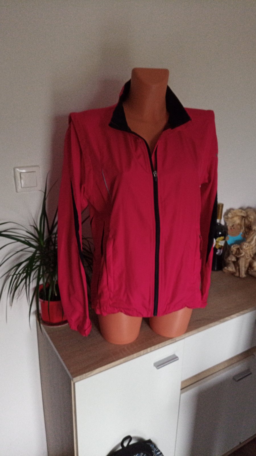 100% stav Rukávy sa dajú odzipsovať. Sýto červená,ani náznak do ružova (foto skresľuje).Značka: crane z Lidl Veľkosť udáva 40/42-M, oblečie možno aj L.