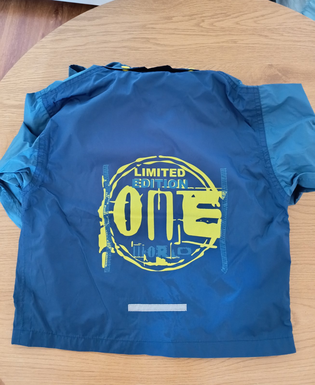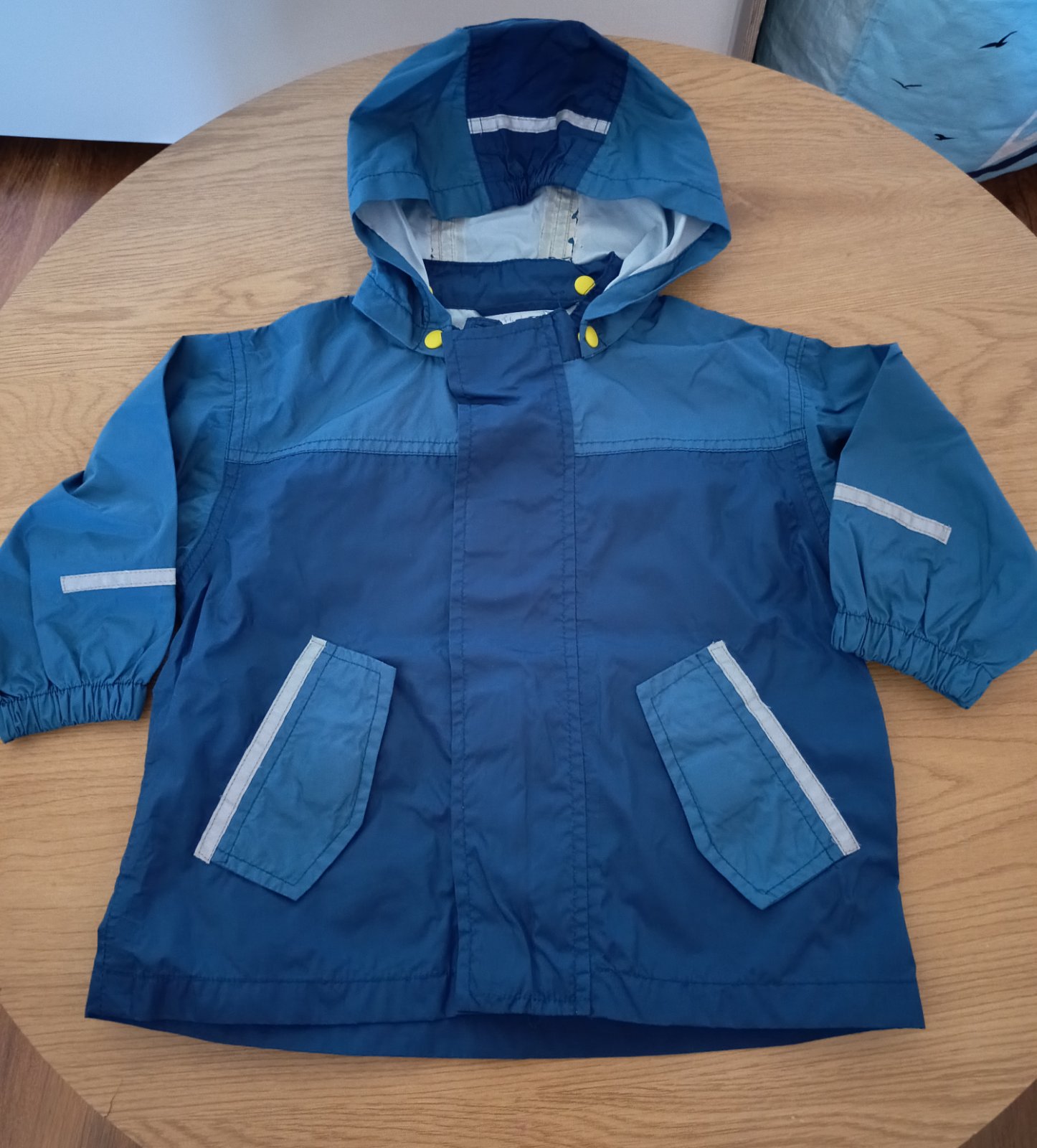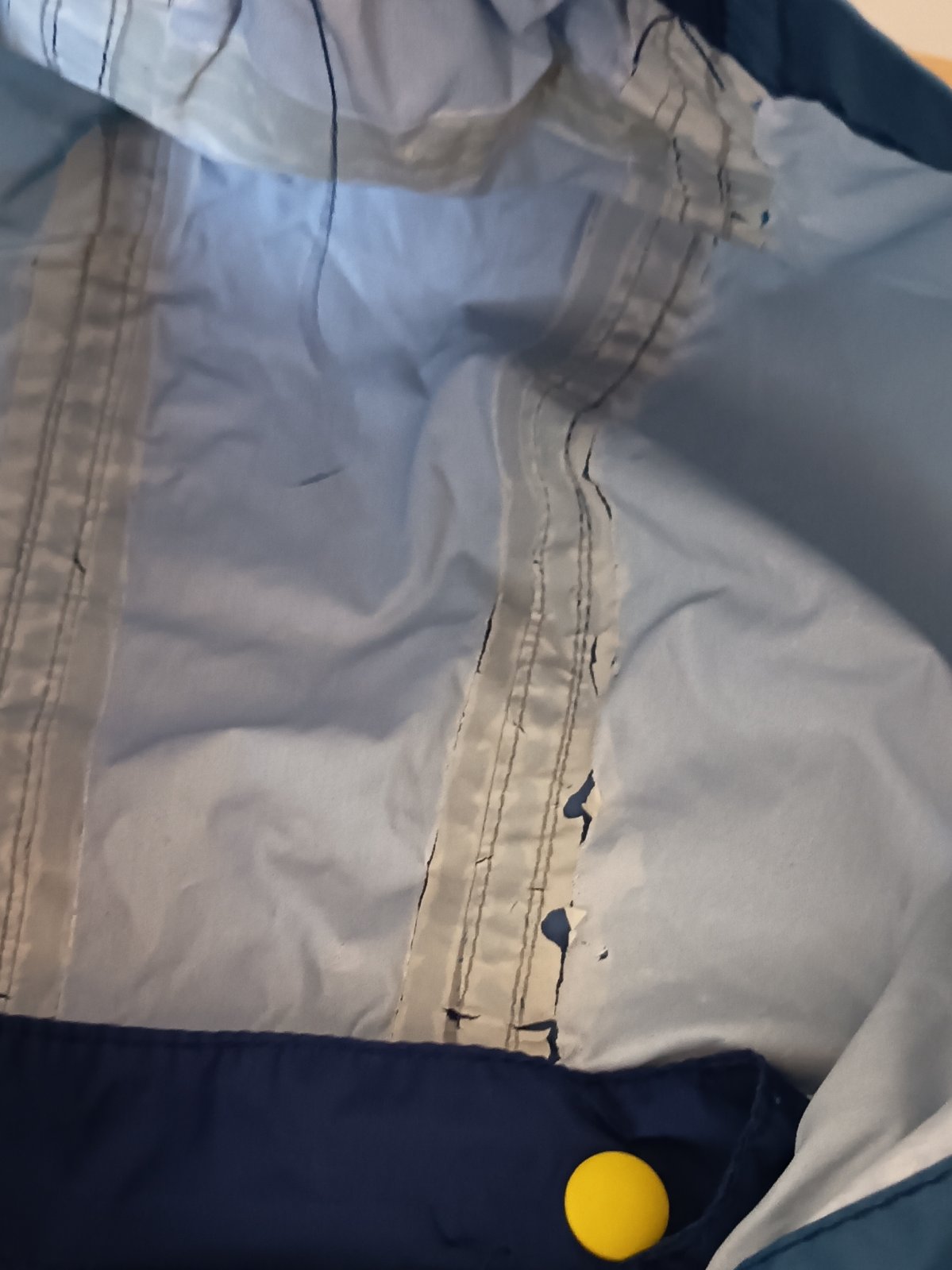 Super stav,farba je krajšia ako na foto,jedinu chybu čo má ,kapucna je odtrhnuta na jednej časti-stačí prišiť,šikovná mamička si s tym poradí raz dva.nepremokavá