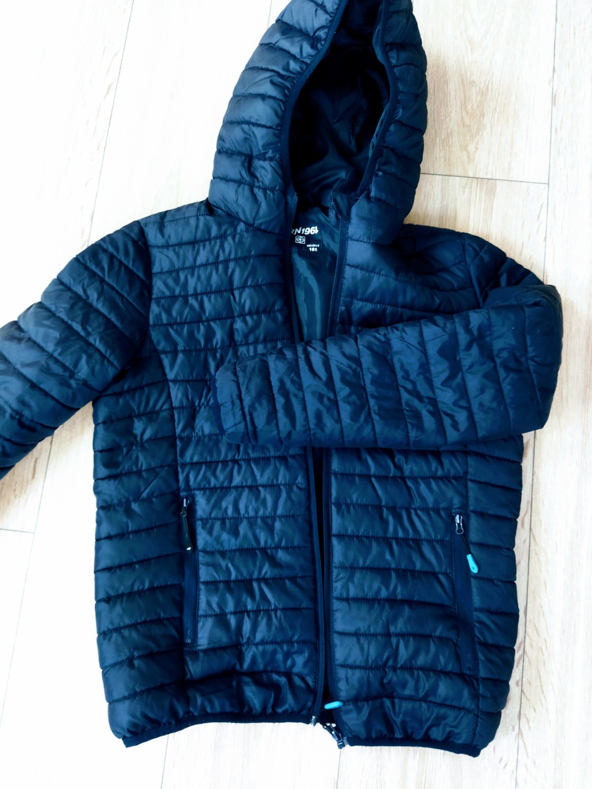 Nosena,super stav akurát malé zatrhnutie vzadu na rukáve viď.foto,šikovná mamička zasije,inak je krásna, písaná veľkosť 164,ale pasuje skôr sem