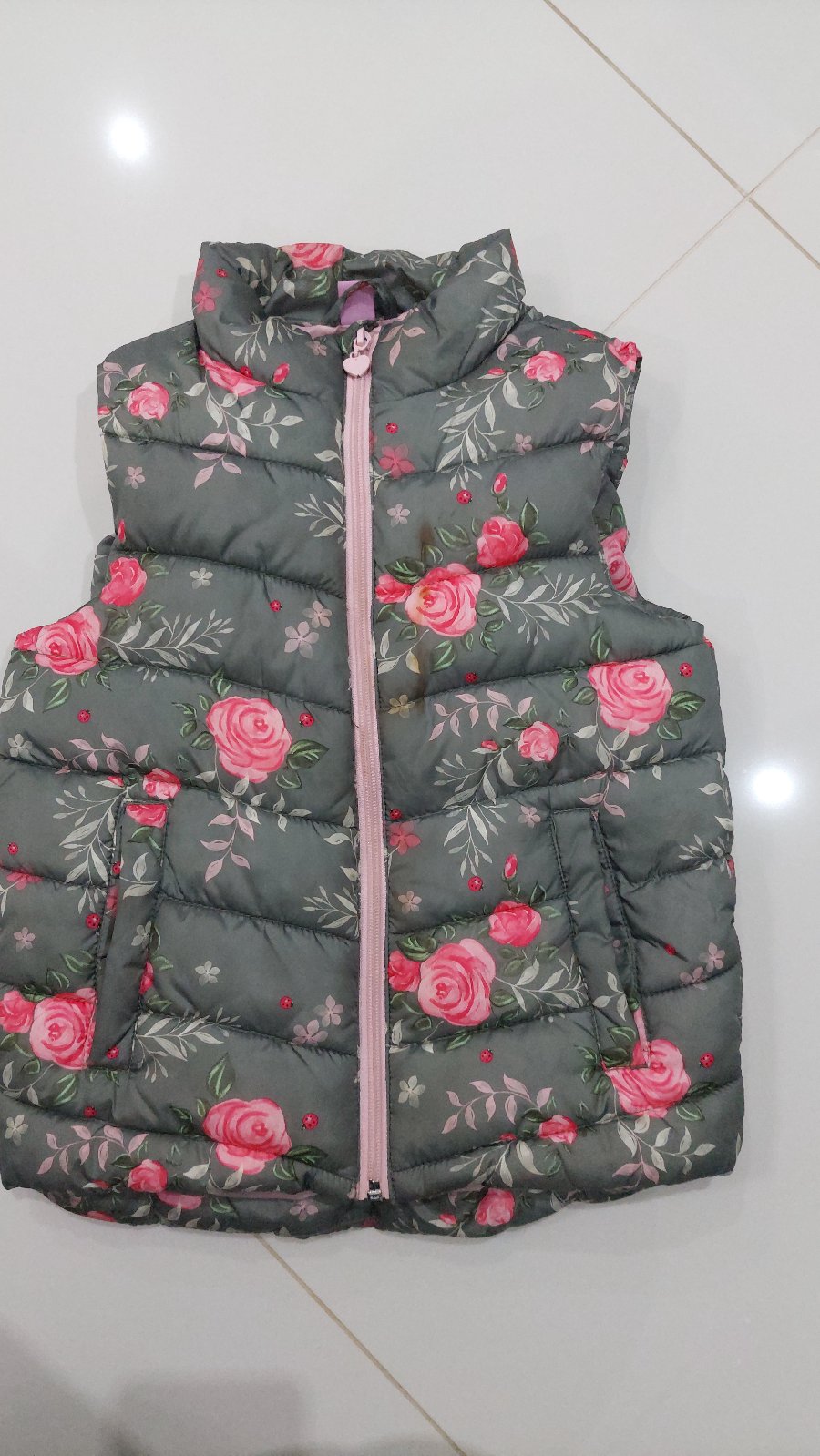 Krásna dievčenská zateplená vesta na zips, s vreckami a reflexným prvkom na chrbáte. Dĺžka je 47 cm, šírka cez hruď je 39 cm. Ešte s visačkou.