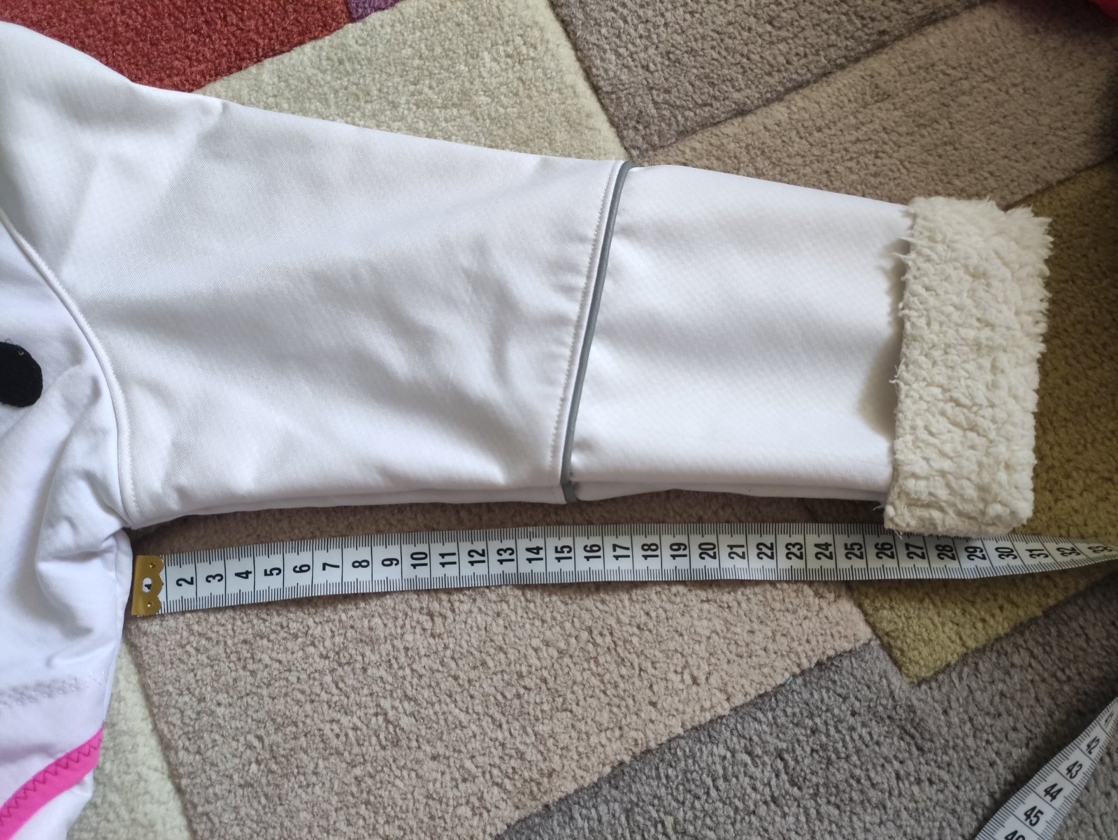 Dobrý deň, predam "mačičkovú" softshellovú bundu na vek 4 -5 rokov - záleží od dieťaťa, vnútro baranček, nastaviteľné rukávy,aby bola rastúca, kopec reflexných prvkov kvalitný zips YKK. Cena 15€. Rozmery na fotke.