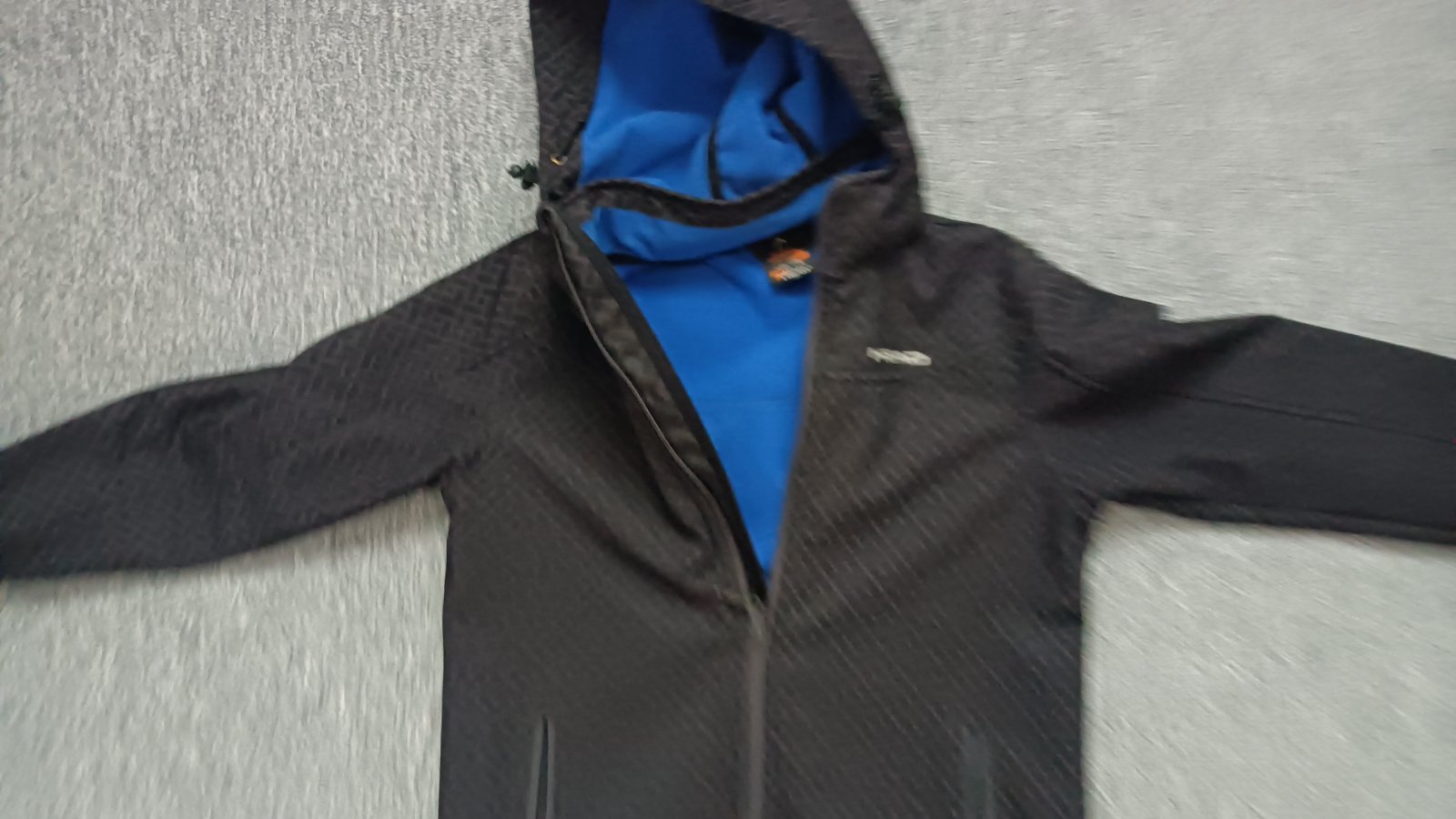 Oranzovo-siva chlapcenska vetrovka vo velkosti 140, nosena, este vsak v dobrom stave
