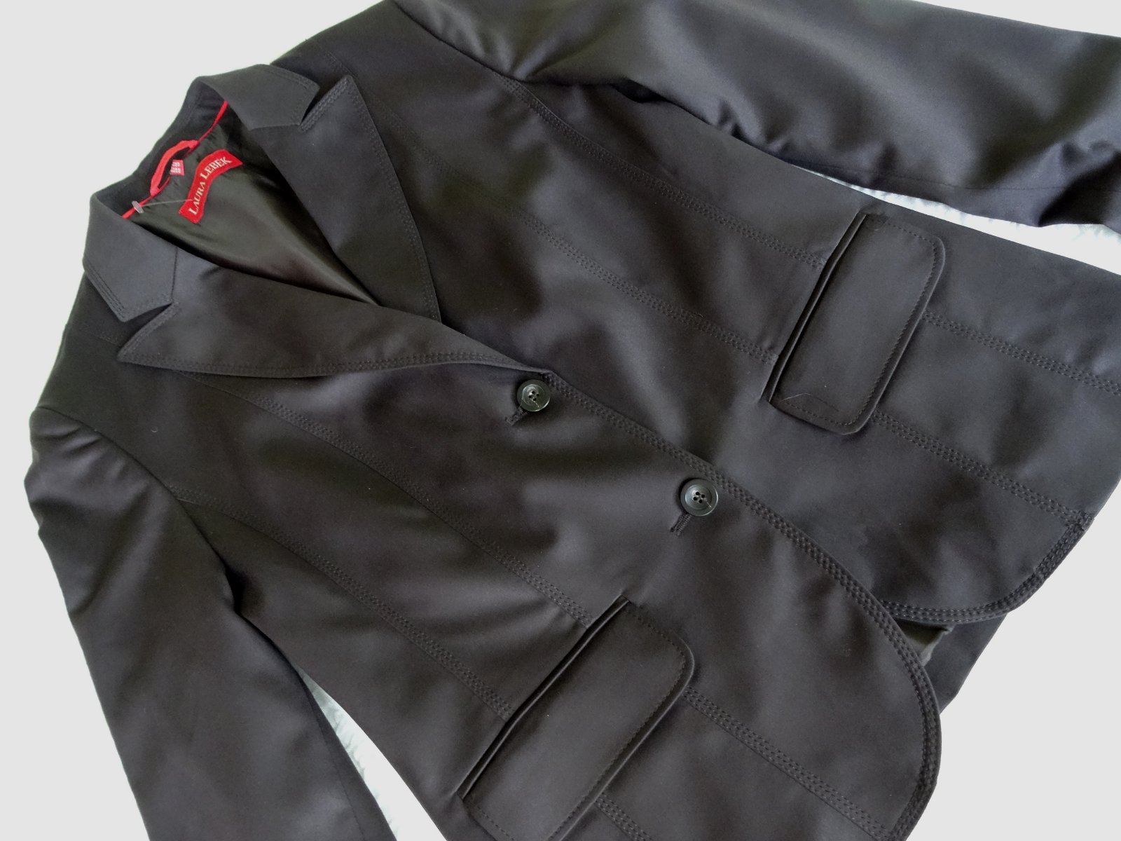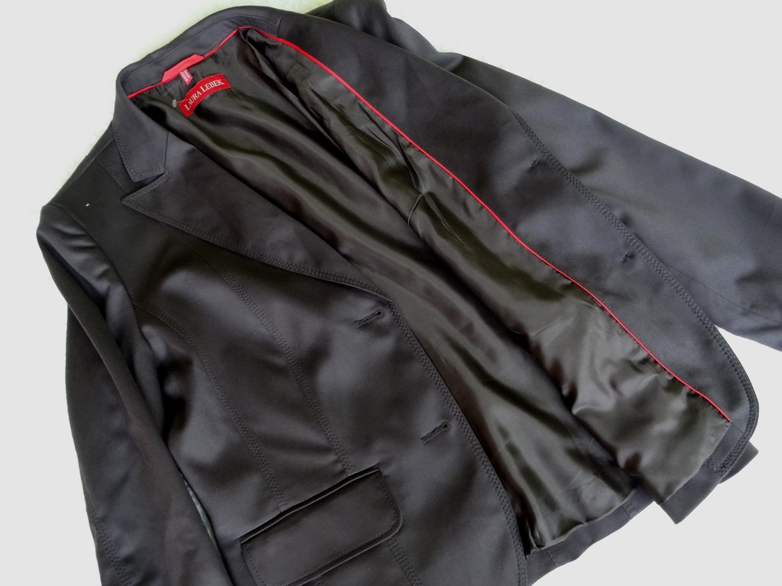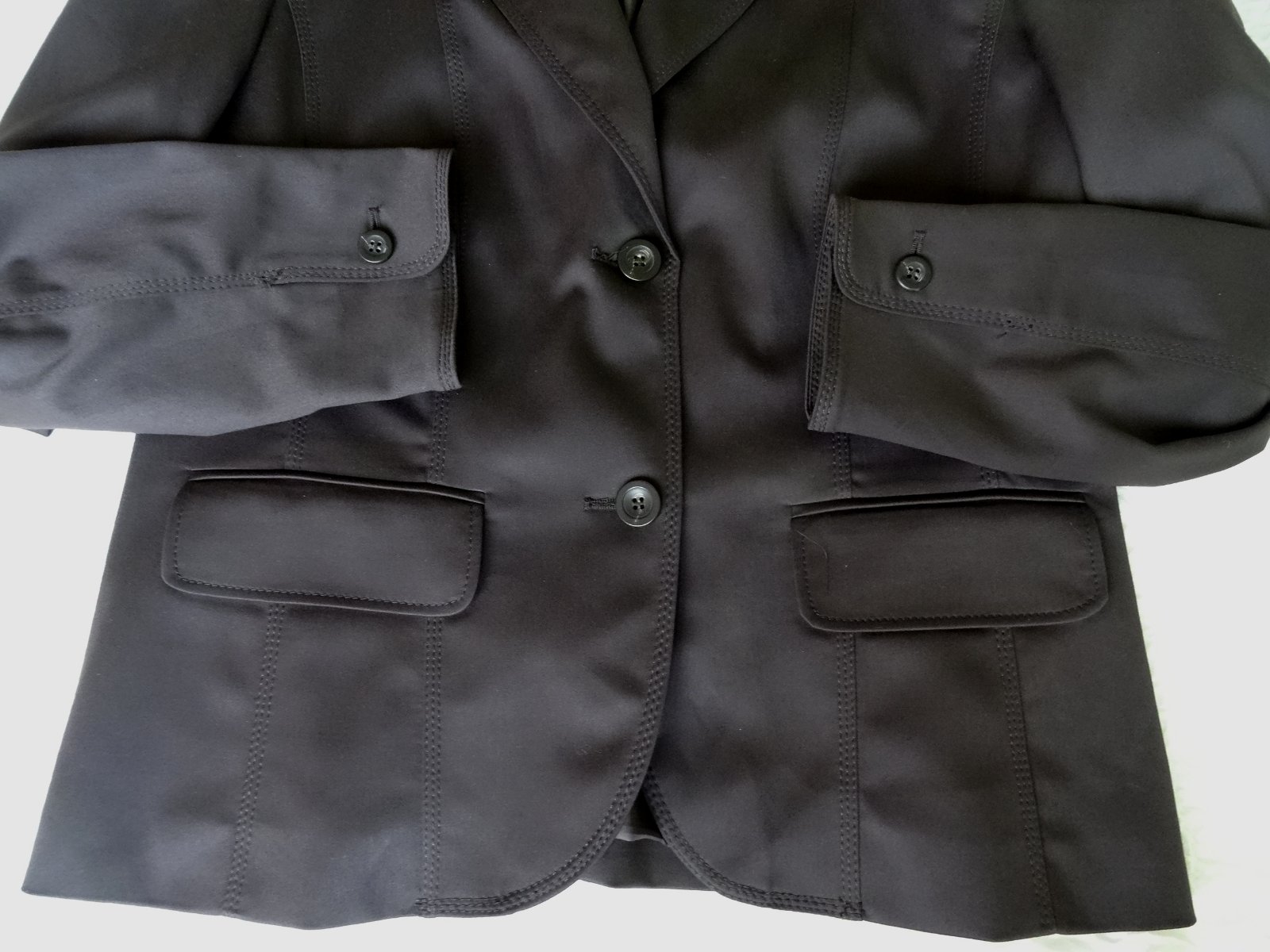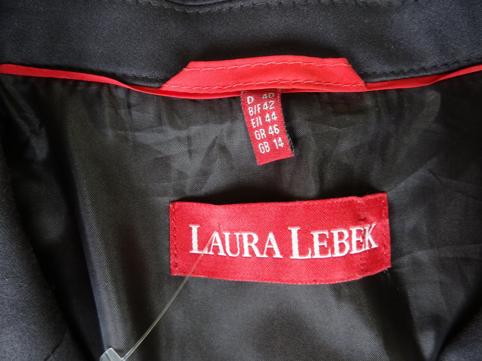 Dámske sako zn. Laura Lebek, veľ. 42/14, rozmery: dlžka 64cm, pod pazuchami 53cm, rukáv od pleca 61 a od pazuchy 43cm.