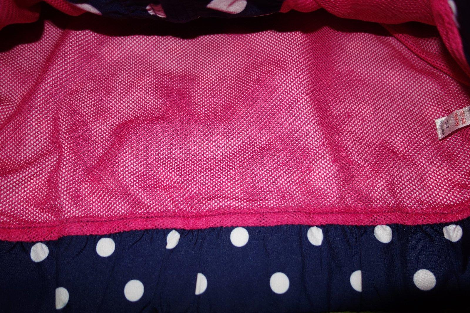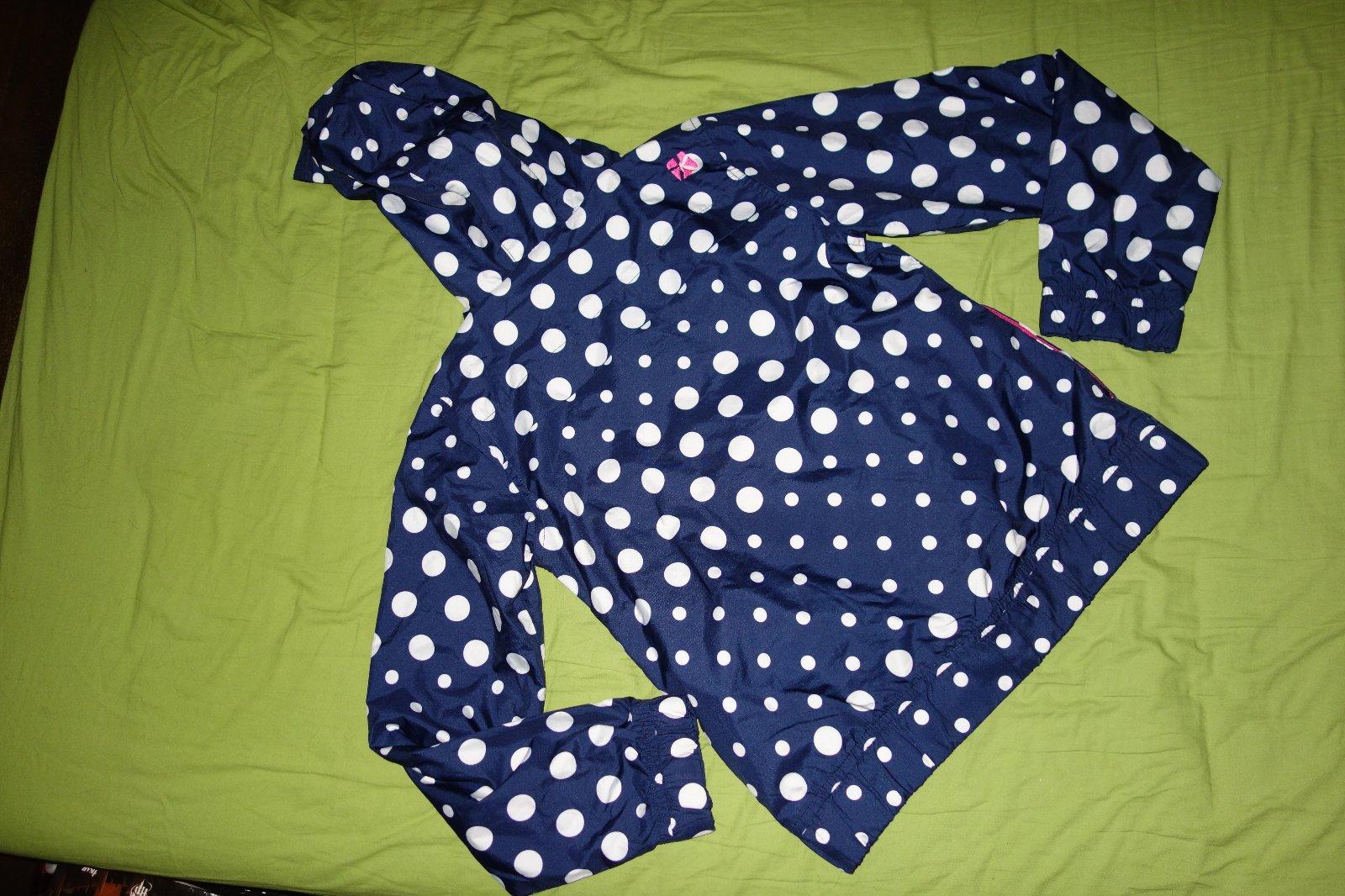 Krasna bodkovana bundicka velmi dobrom nosenom stave- na prekryti zipsu ma ten material akoby take malilinke biele bodky (skusila som odfotit, ale je to velmi slabucke, takze to asi nie je dobre vidno ani na fotke). Je tenka, len podsita sietovinou. Velkost je uvedena ako dievcenske L, co by malo zodpovedat velkosti 158/164.