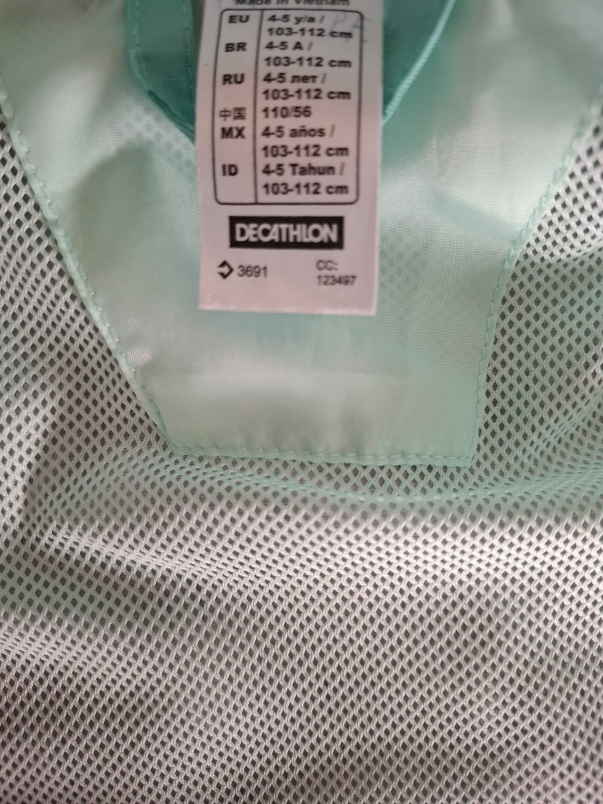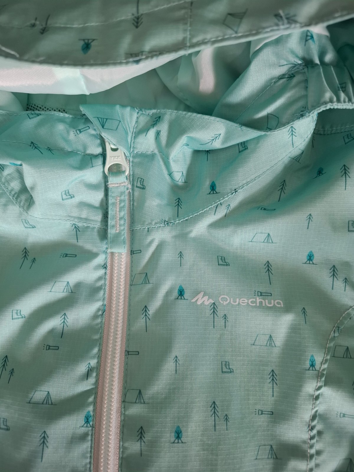 Tenka prechodna vetrovka Quechua, velkost pisana 105-114, nosili sme ako cca 110-122. Vetrovka je ciastocne nepremokava. Mam dve rovnake, na jednej je maly fliacik na zadku, druha ma smuhu na rukav...