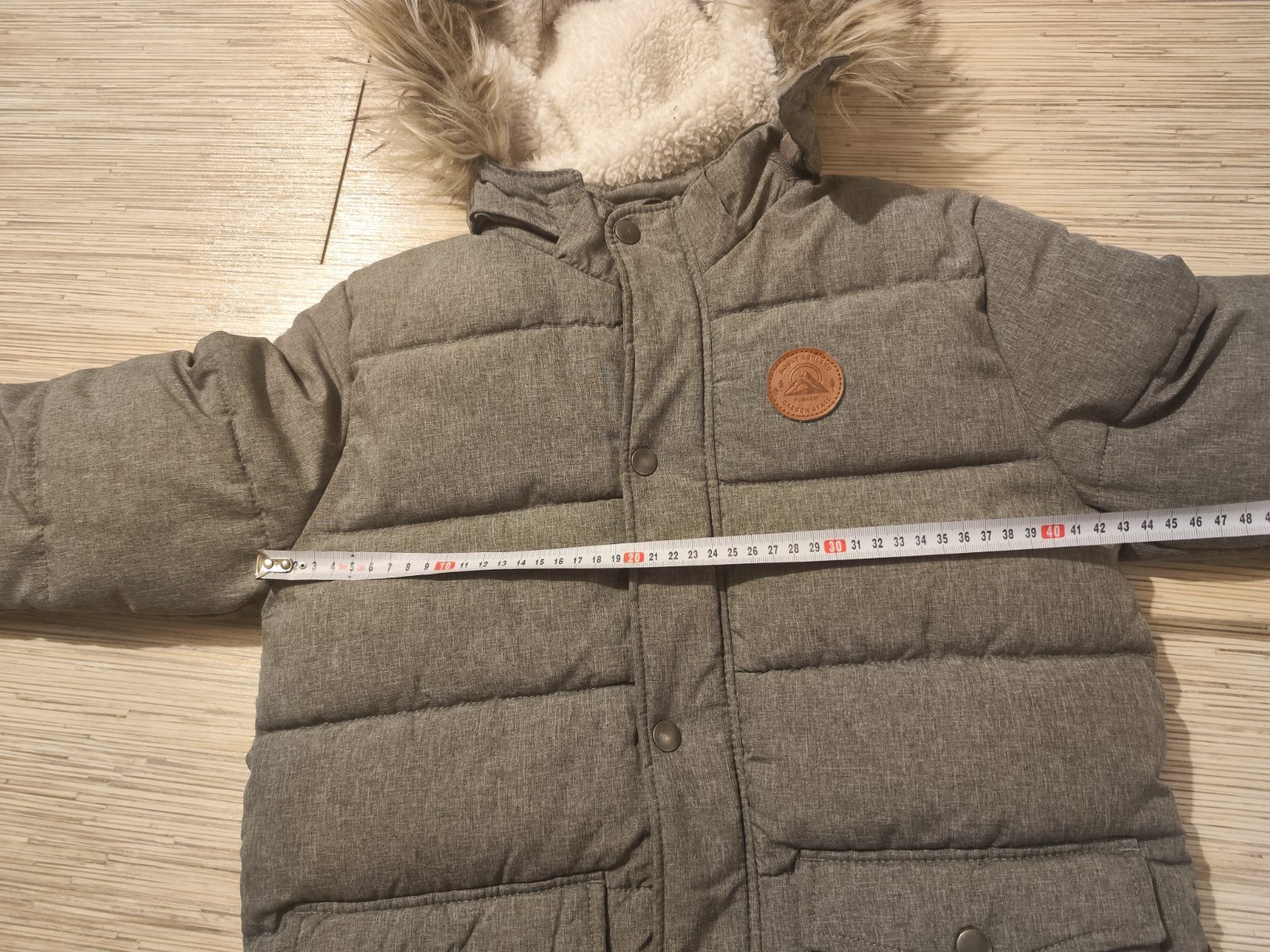 Veľmi dobrý stav. Predĺžená bunda. Dĺžka od ramien dole 90 cm.