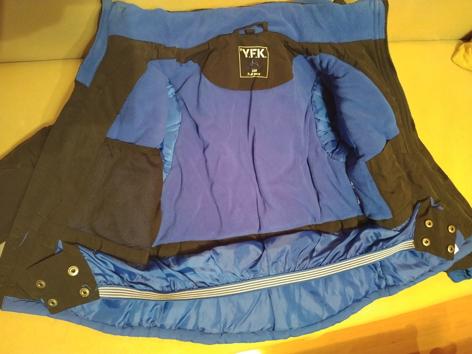 Predám veľmi teplú lyžiarsku bundu s odnímateľnou kapucňou. Na ľavom rukáve funkčné vrecko na zips. Celková dĺžka chrbátika je 55cm, obvod pod rukávmi je 2x44cm a vnútorná dĺžka rukáva je 34cm.