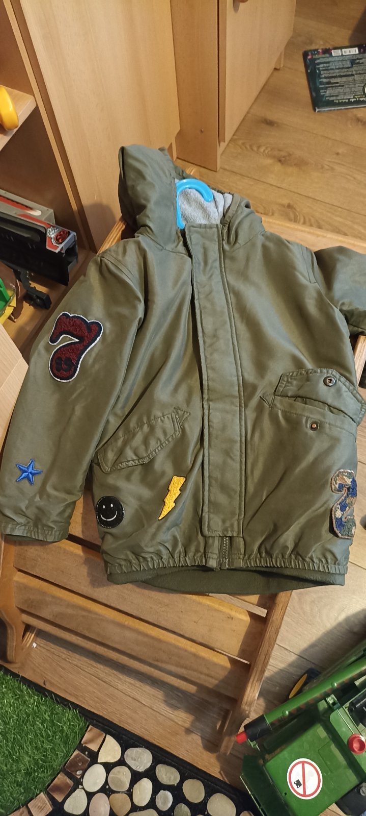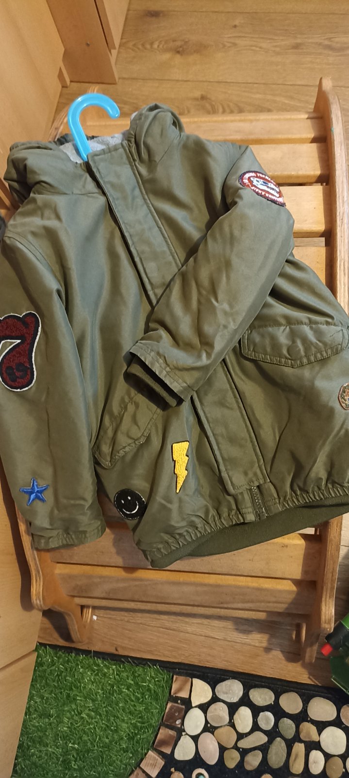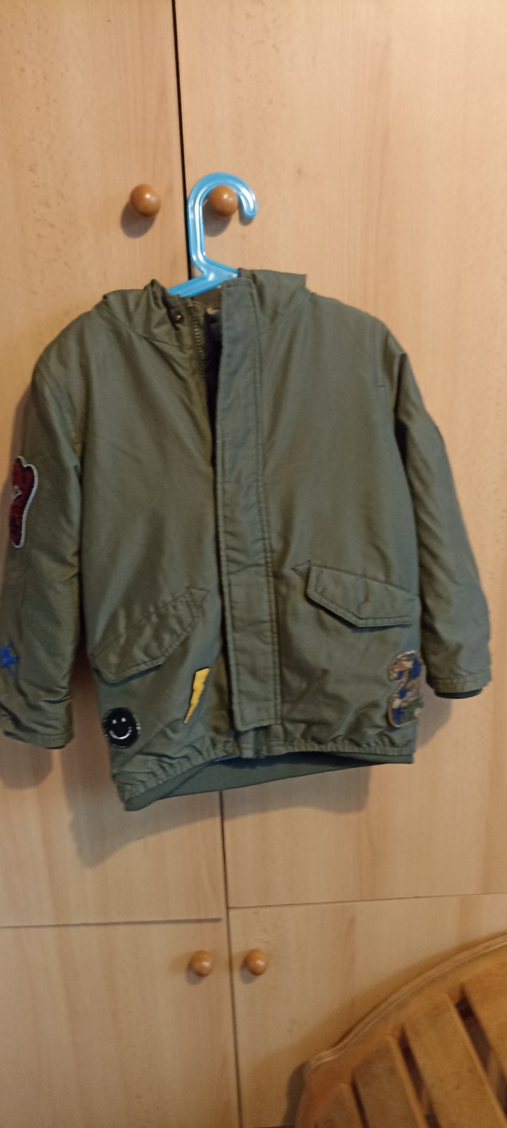 Praktická predĺžená bunda. Bez poškodení. Má pekné aplikácie a praktické vrecká na cvoky. Dá sa nosiť dlhšie.
