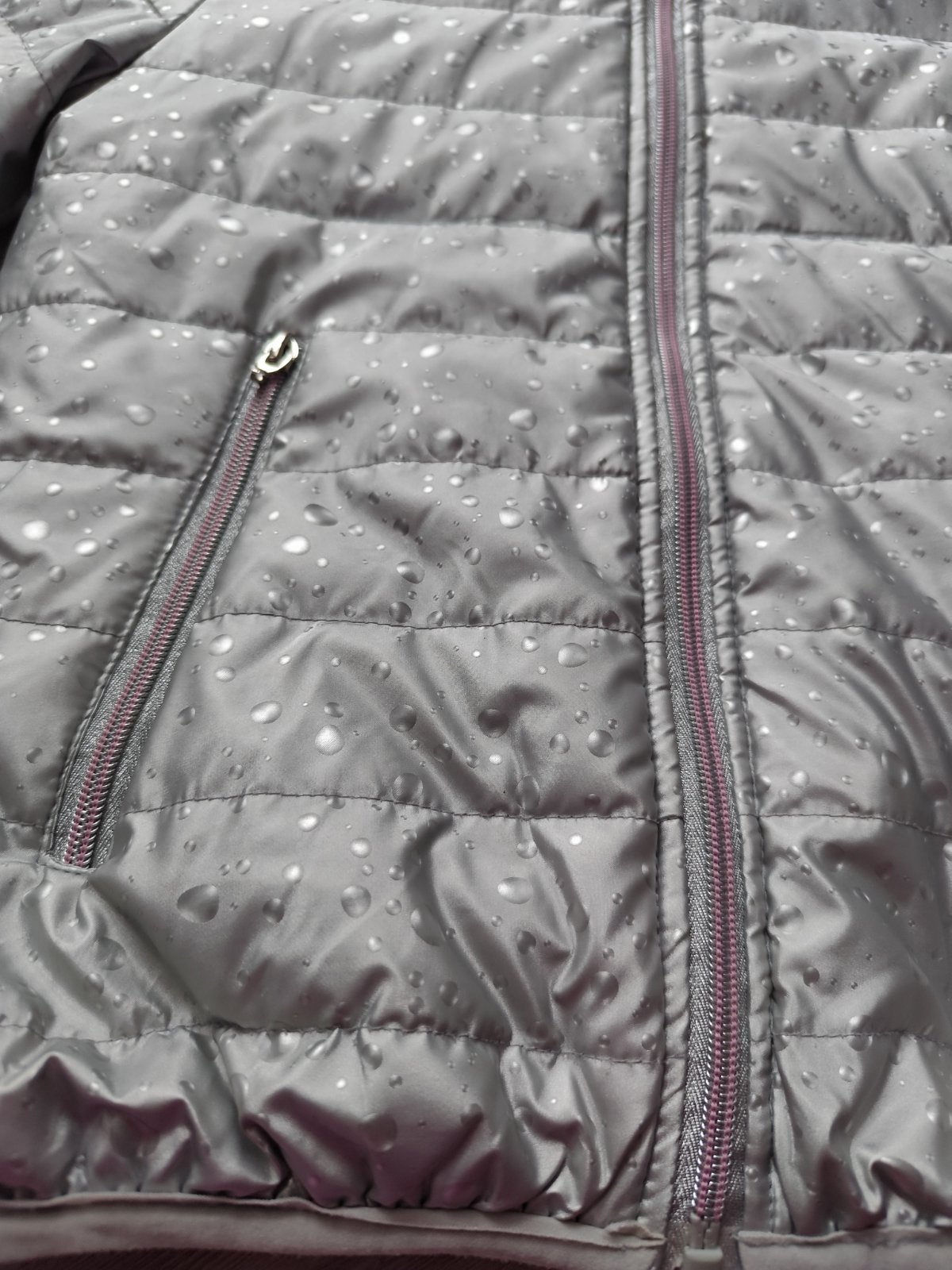 Prechodna zateplena bunda vel 140 s dvomi vreckami, perletovy efekt kvapiek vody
