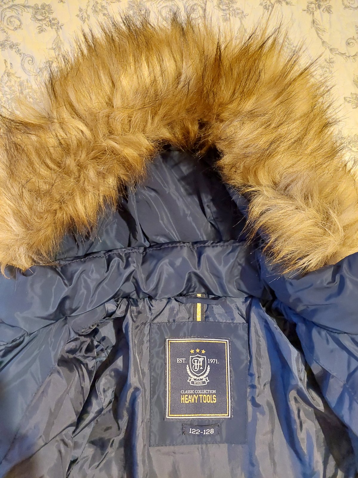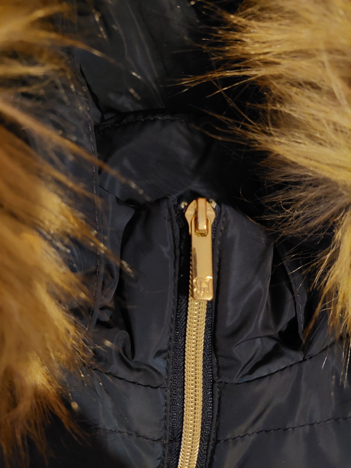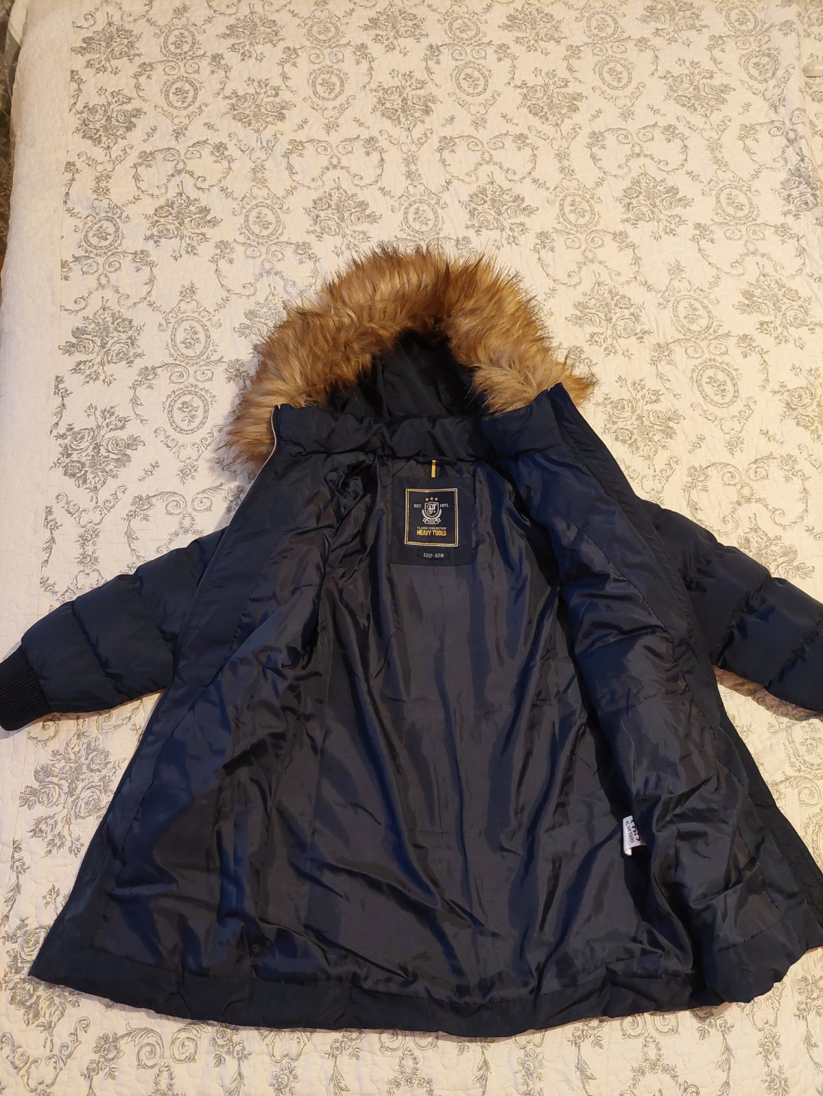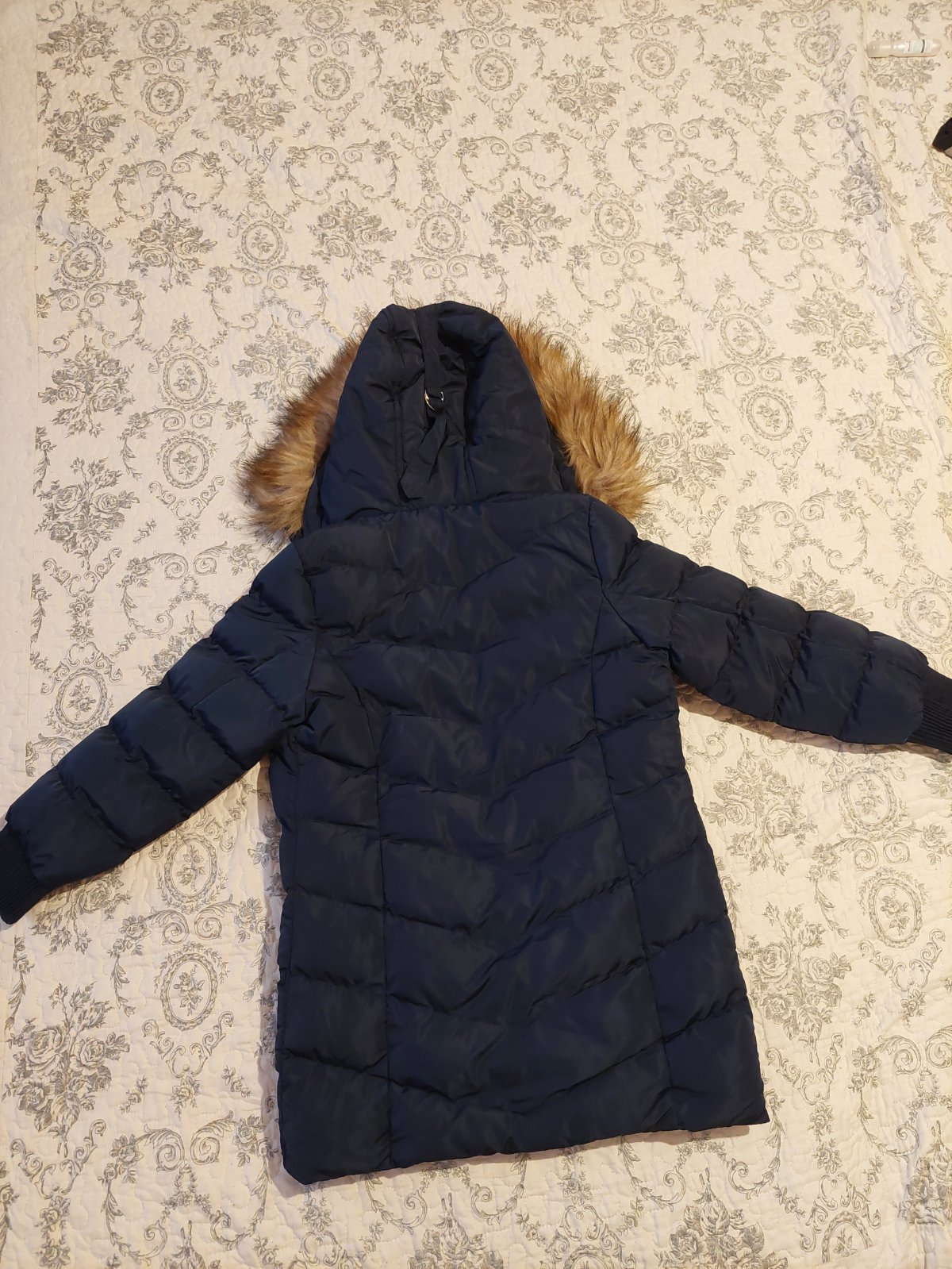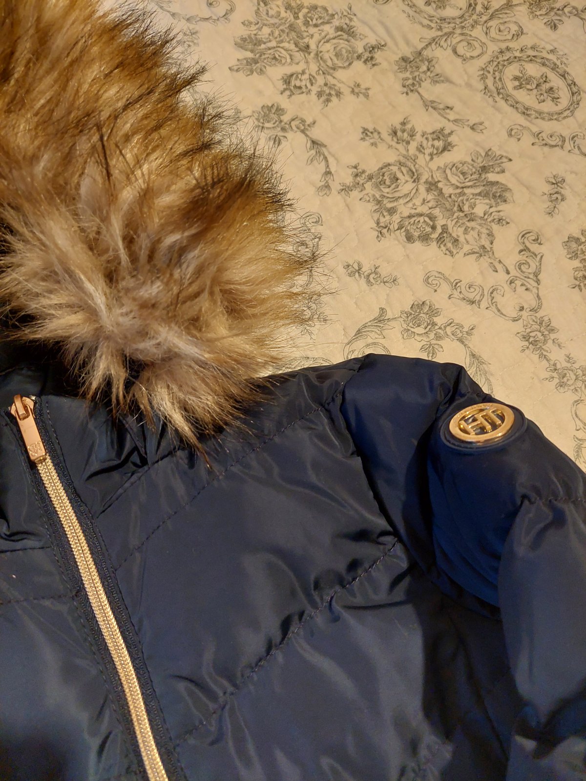 Nadherna,luxusna zimna bunda.Original znacka,kvalitne prevedenie podobny štýl ako Tommy Hilfiger.Predlzena,tepla a krasne vyzera na postave.Kozusinka odnimatelna,na cvoky.Velkost 122/128.Poslendy obrazok pustena nitka na presivani.Inak neviem o nicom.Odporucam!