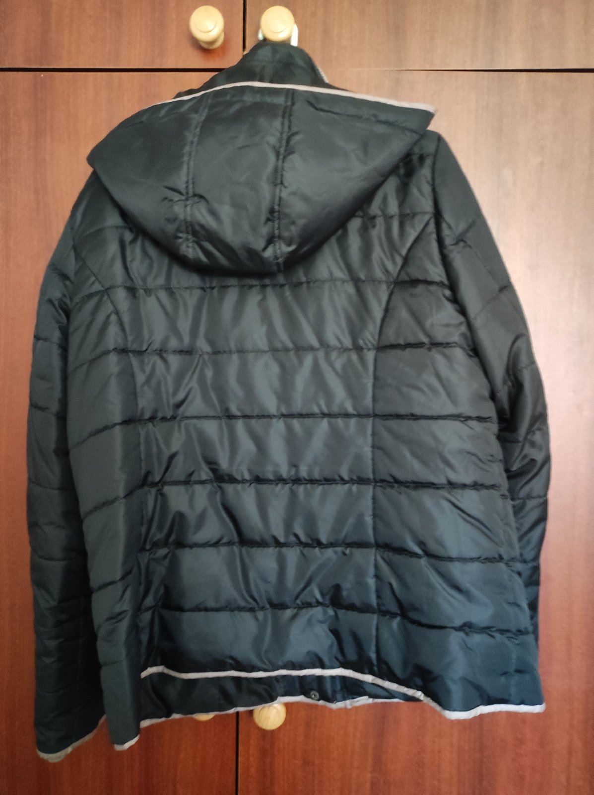 Praktická, pohodlná prechodná bunda, takmer nenosená, ako nová. Dĺžka vzadu 90 cm, vpredu 73 cm, šírka 57 cm, rukáv 63 cm, veľkosť 44.