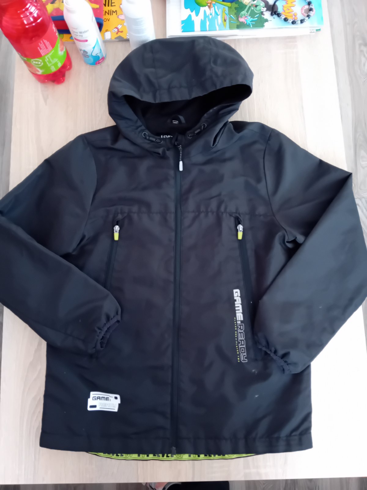 Predám chlapčenskú prechodnú bundu, obsahuje reflexné prvky, z vnútra je zateplená, v oblasti vačkov sú menšie fliačky, no nič strašné(zohladnené v cene) celková dĺžka 63cm, rukáv od ramena 55cm, šírka 2x48cm.