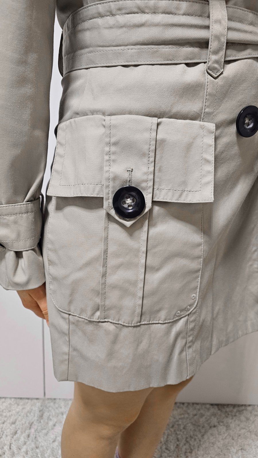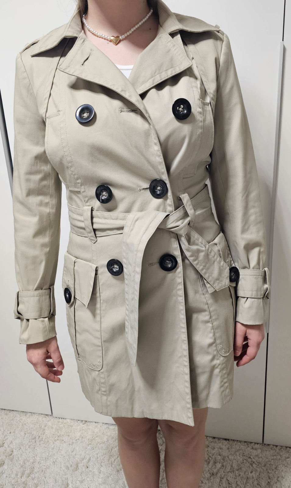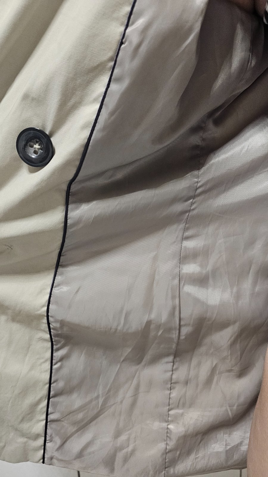 Výborný stav. Dĺžka 86 cm, šírka v hrudníku 50x2 cm, šírka v páse 44x2 cm, dĺžka rukáva od krku 75 cm. Kvalitný pevný materiál s podšívkou.