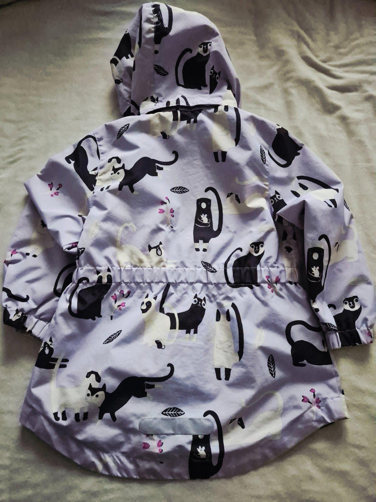 Krasna predlzena bundicka. Nie je zateplena, vhodna na chladnejsie leto, jar a jesen. Pas sa da zvnutra gombikmi nastavit. Nosena dcerou, nema ziadne poskodenia,vynikajuci stav