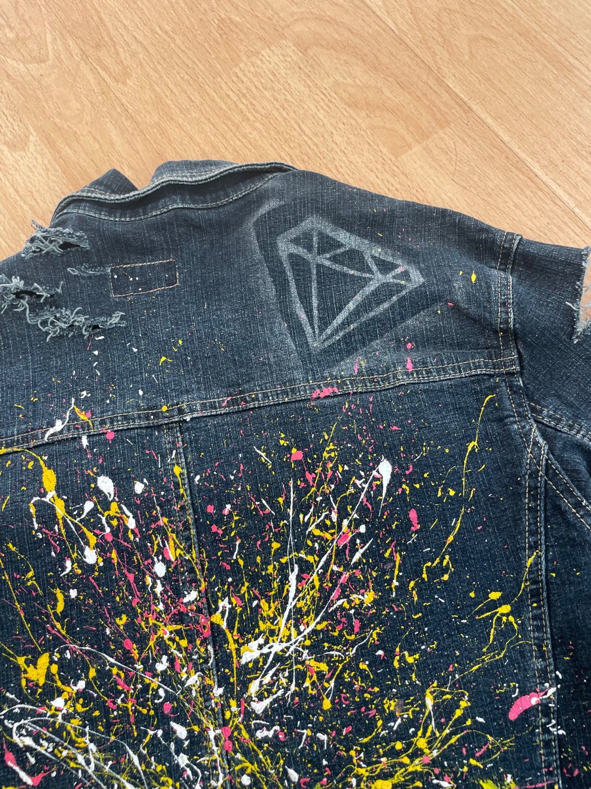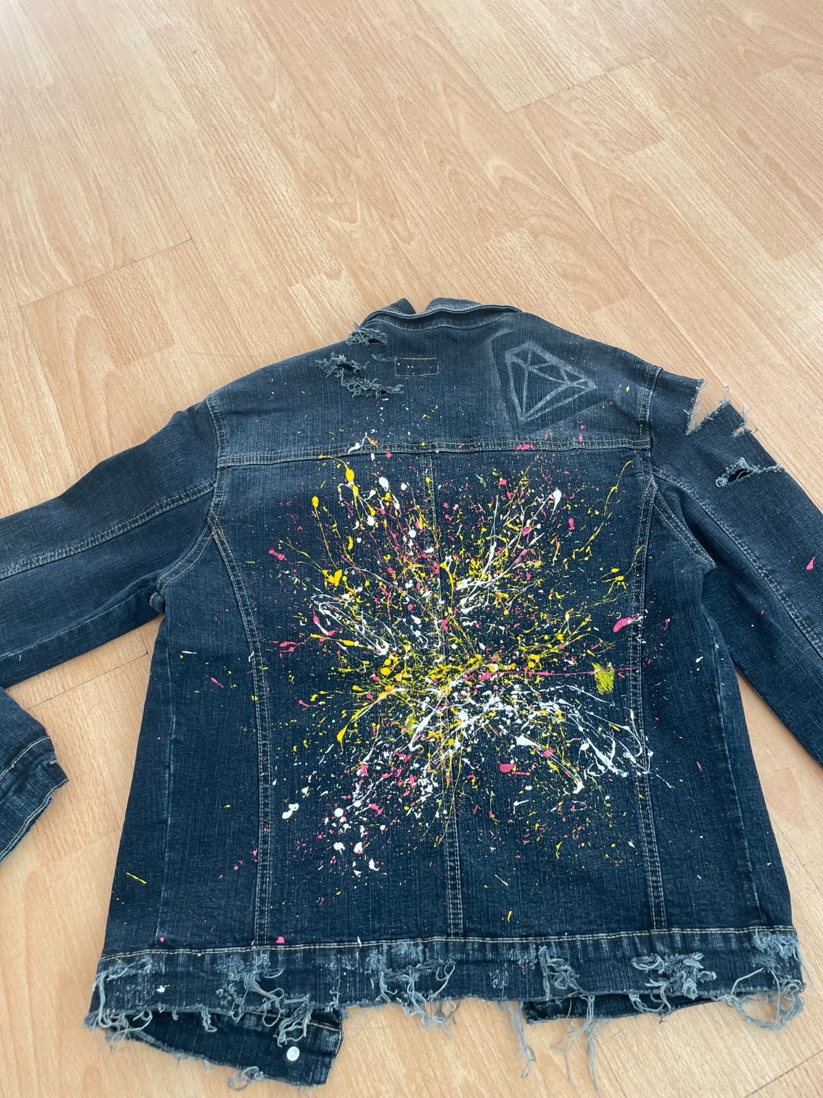 Nadherna vybijana riflova bundicka.Top stav. Velkost XS,S. Znackova znacka rossodisera. Povodna cena 90 eur. Minimum nosena cca 3-4 krat. Sirka v podpazi 40cm, uplne dole 33 cm. Celkova dlzka od kr...