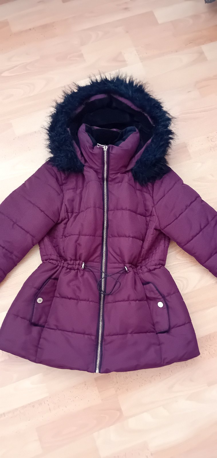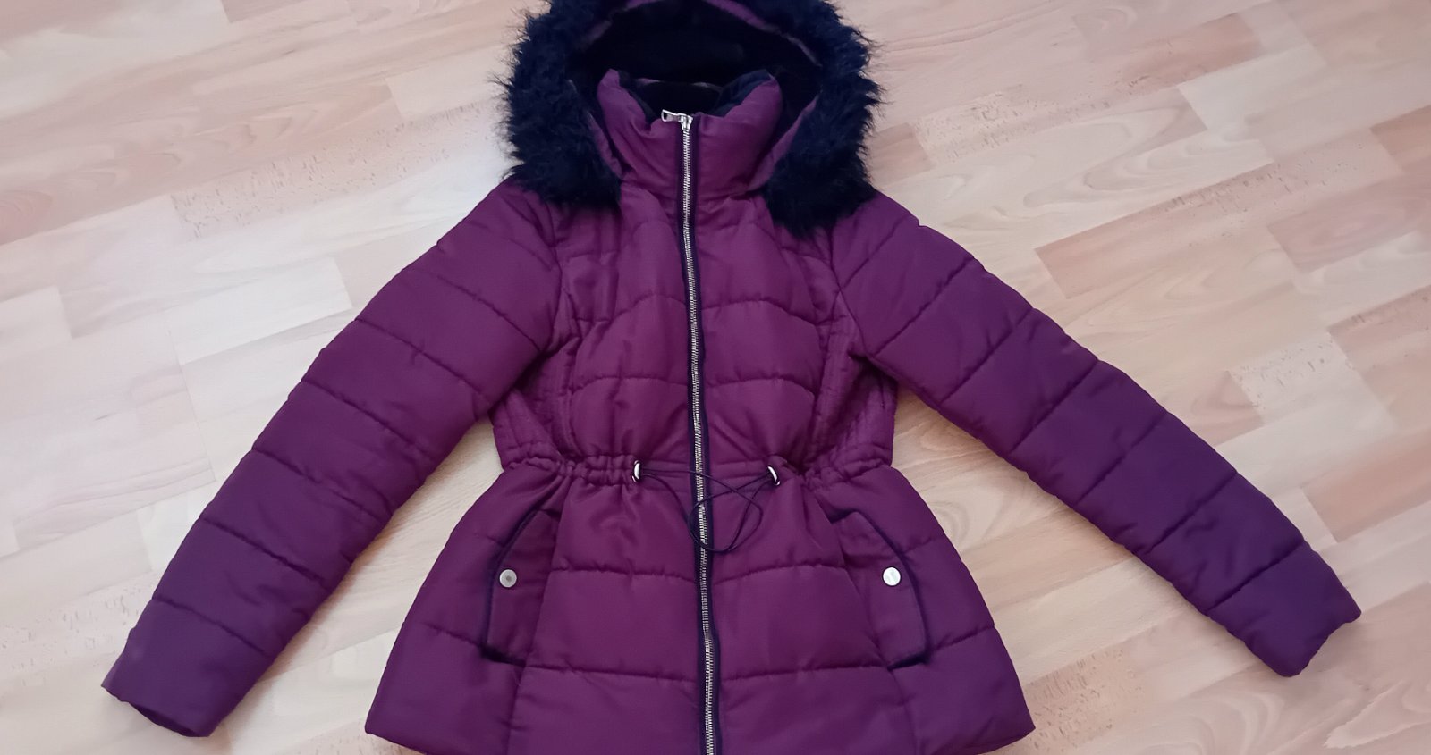 Predam nosenu bundu bez poskodeni. Pisana je veľ. 38, ale skôr sedí na S. Velmi tepla, vhodna na chladne dni. Dá sa krásne stiahnut v pase.
