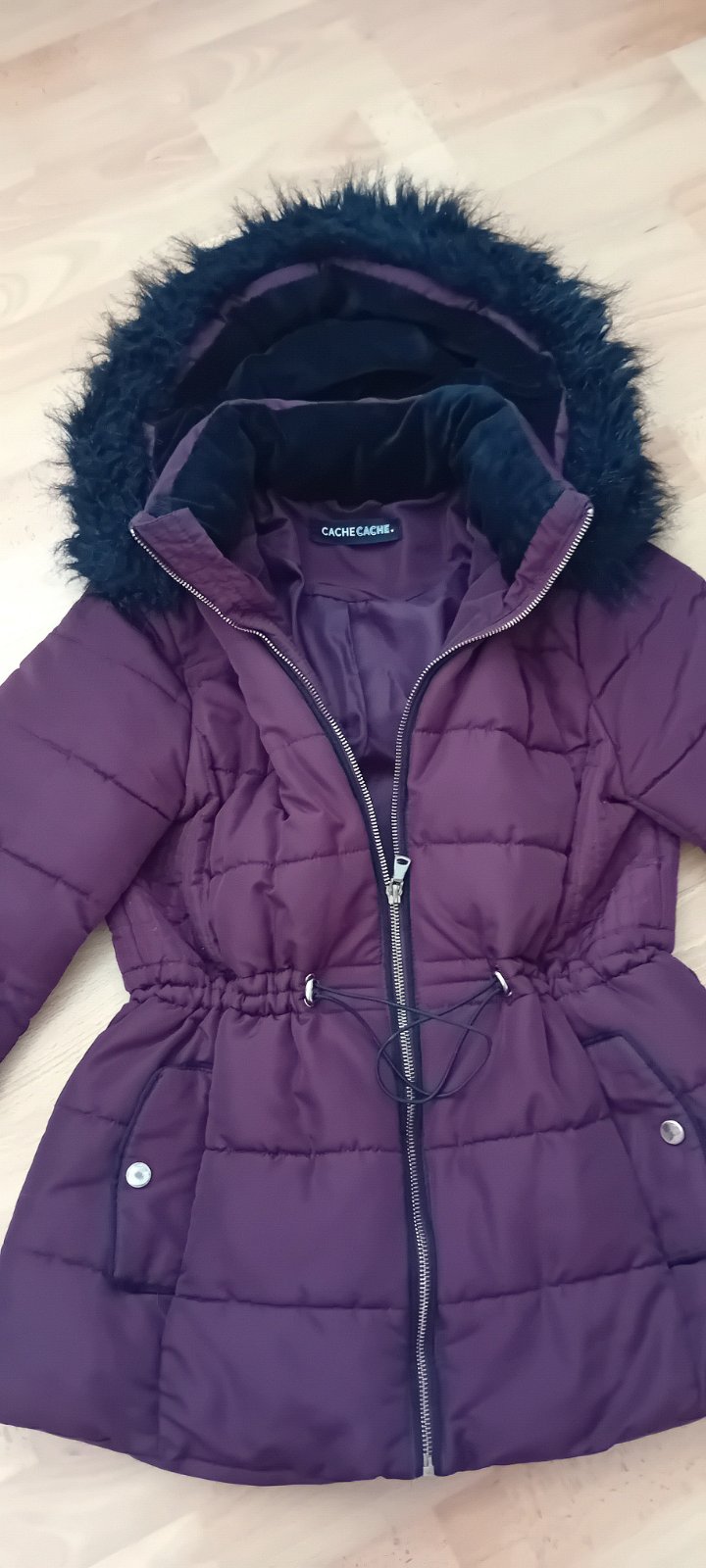 fialový podšitý kožuštek, značka asos, veľkosť 38, veľmi dobrý nosený stav, dĺžka 55cm, šírka pod pazuchami 54cm, rukáv od krku 74cm