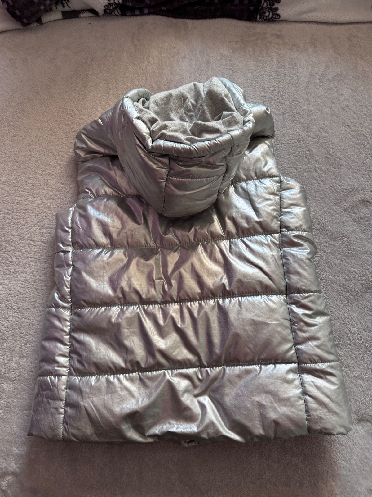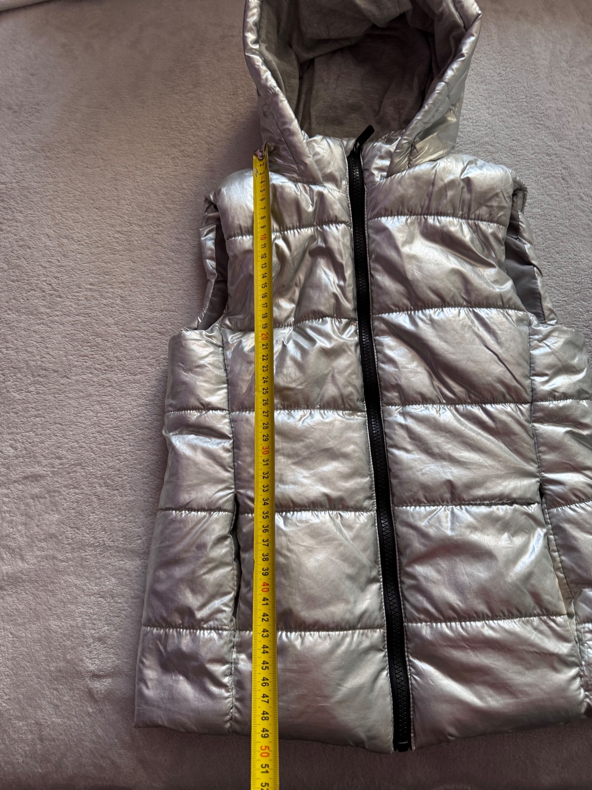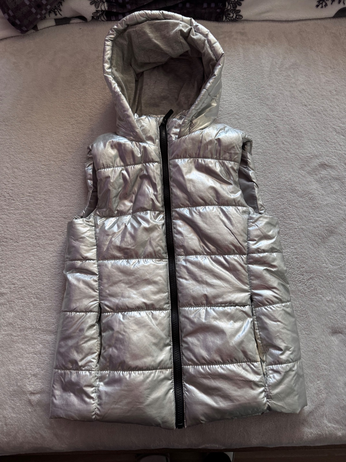 Ponukam krasnu vestu striebornej farby, top stav, velkost 146,dlhsi strih na 8-9 r.okov,striebornej farby s kapucnou.Prijemny makky material. Da sa prat na 30 stupnov v pracke. Je mäkká a lahucka. ...