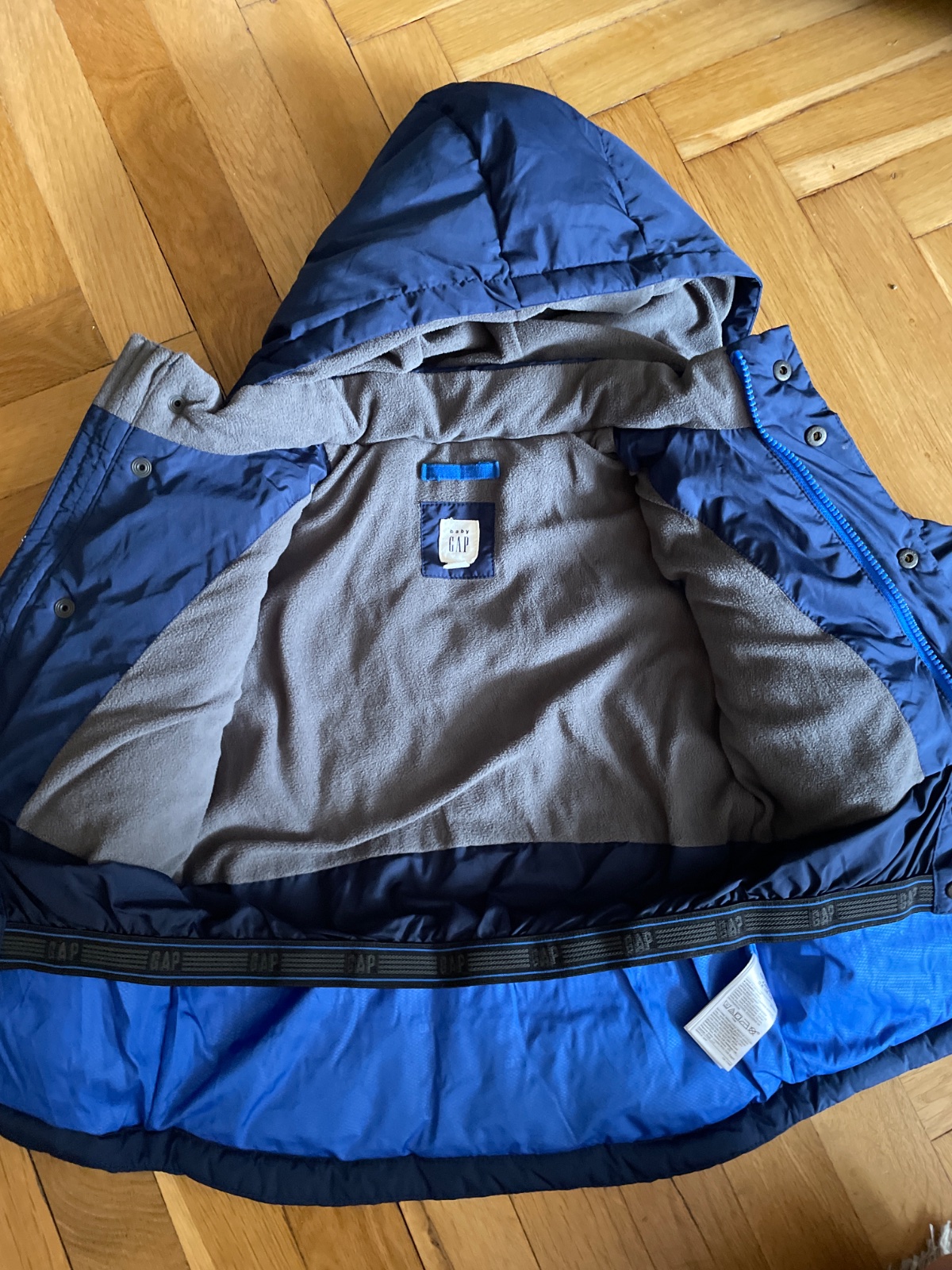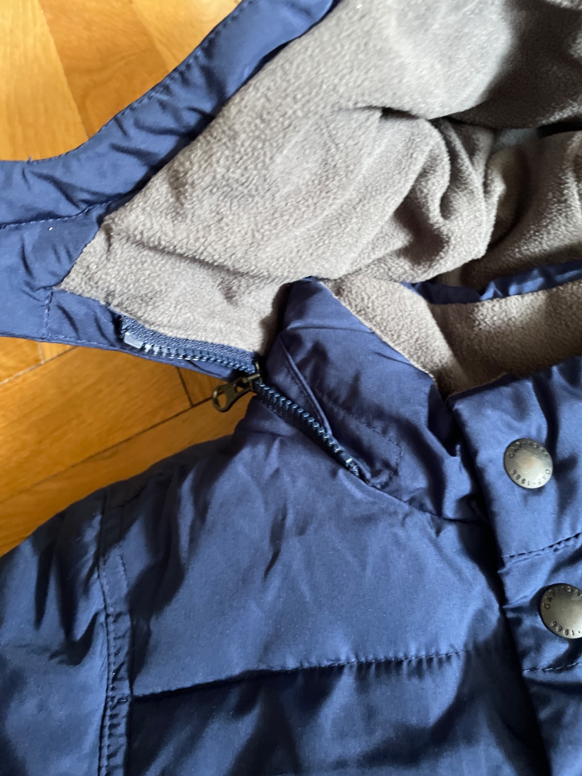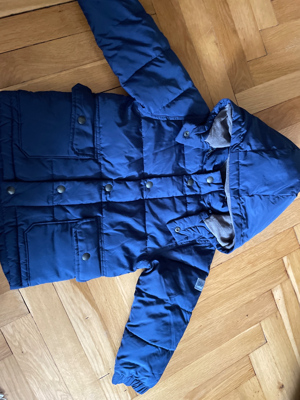pekny dlhsi kabatik s odopinatelnou kapucou, teply velkost 4roky, bez poskodeni