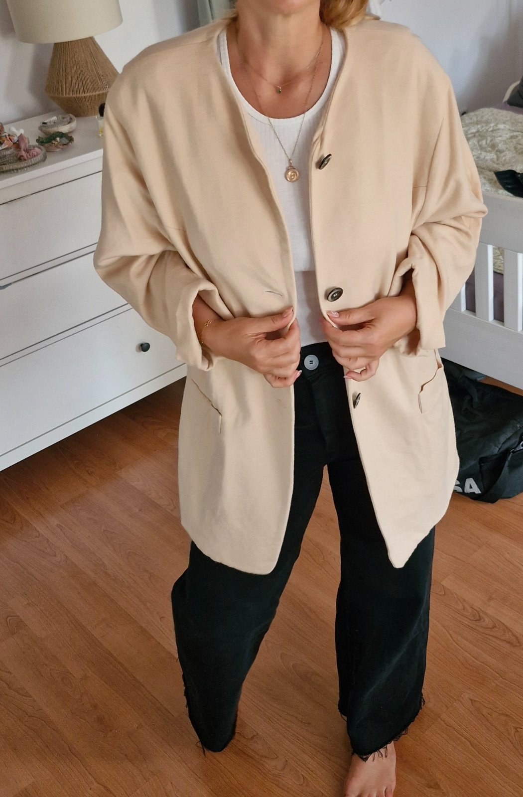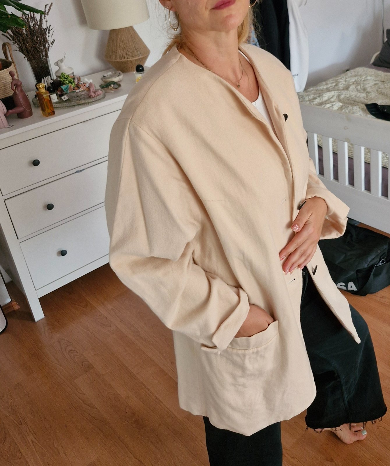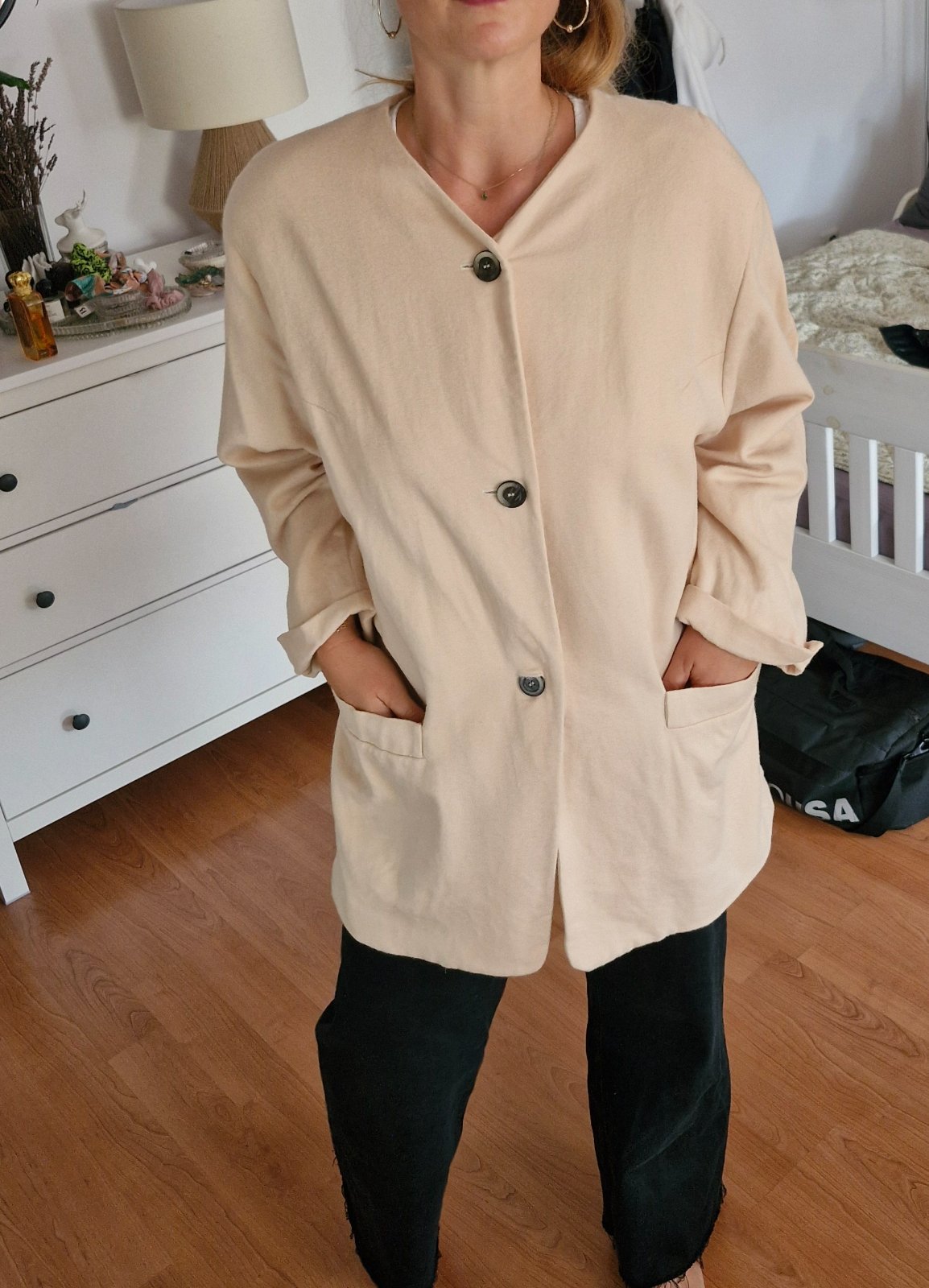 Nadcasovy oversize kusok z vlny a kasmiru. Sedi oversize M-XL.
