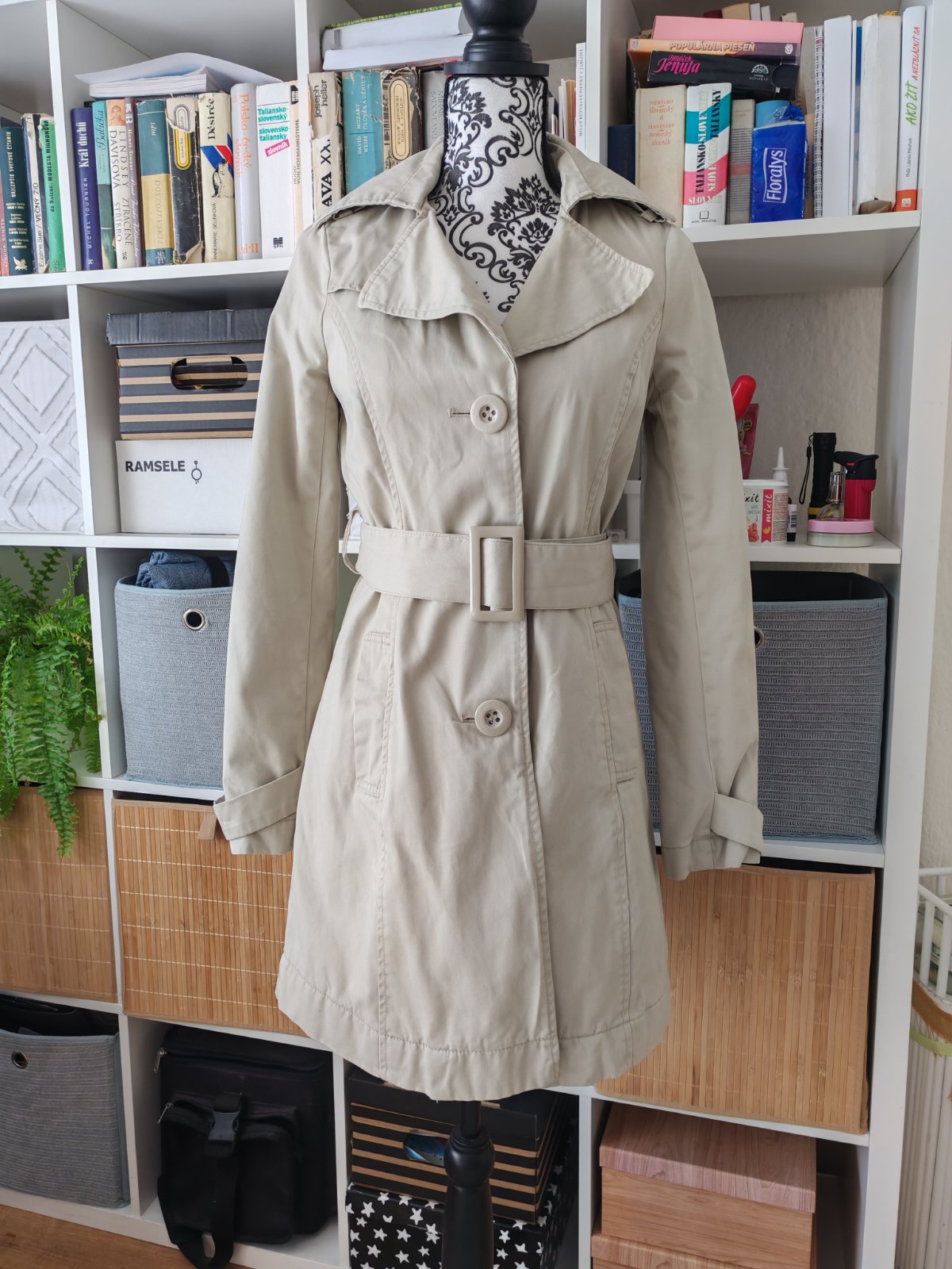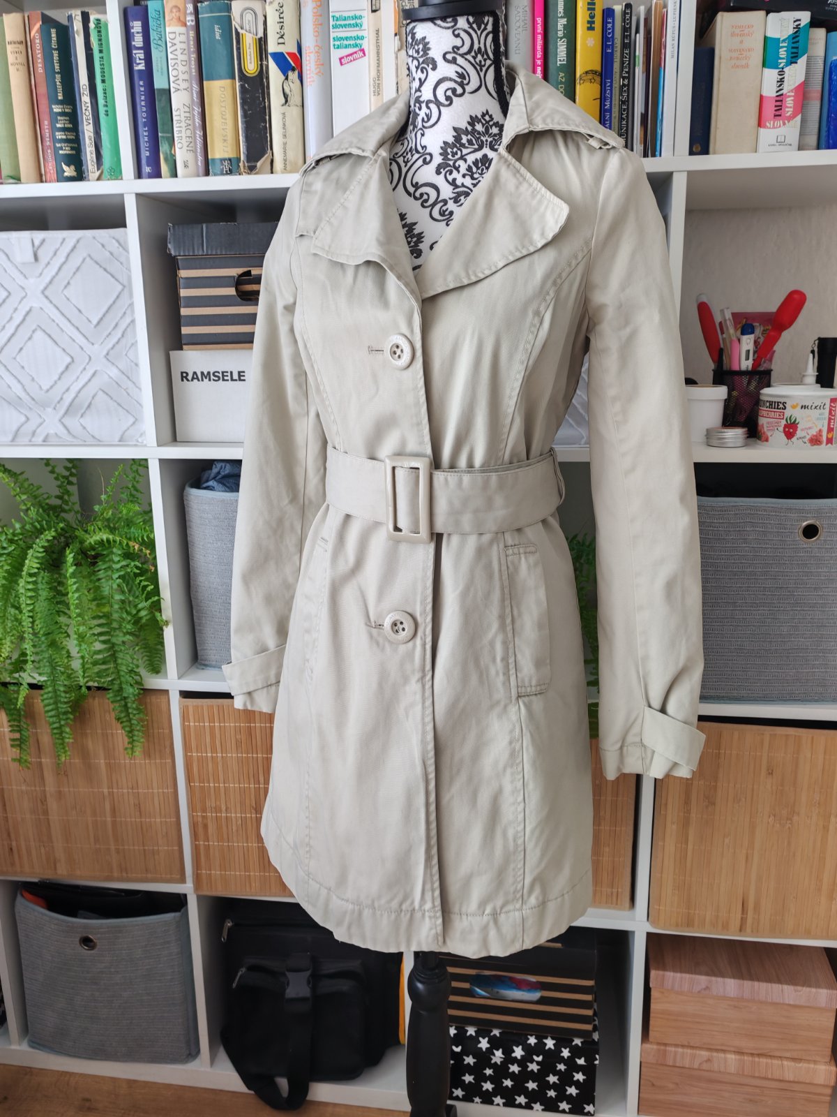 Nosený trenčkot, ma známky nosenia, inak bez vád.
