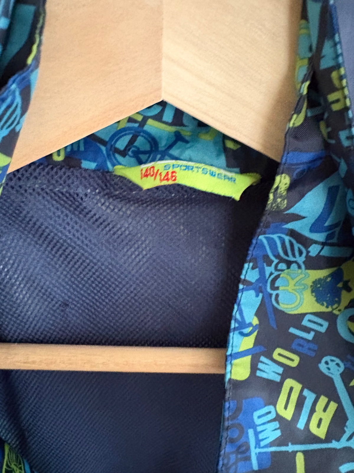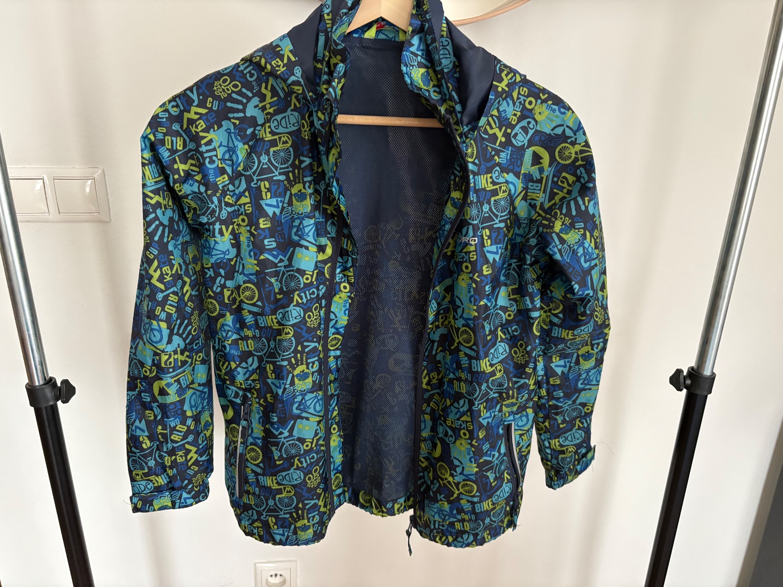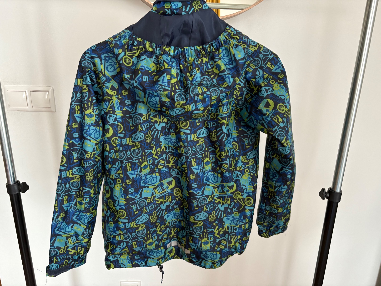 Prechodná, jarná bunda. Funkčny nepremokavy a vetru odolny material. Značka Sportissimo (euro sports). Velkost 140-146. Stav- noseny, bez poskodeni, bez dier.