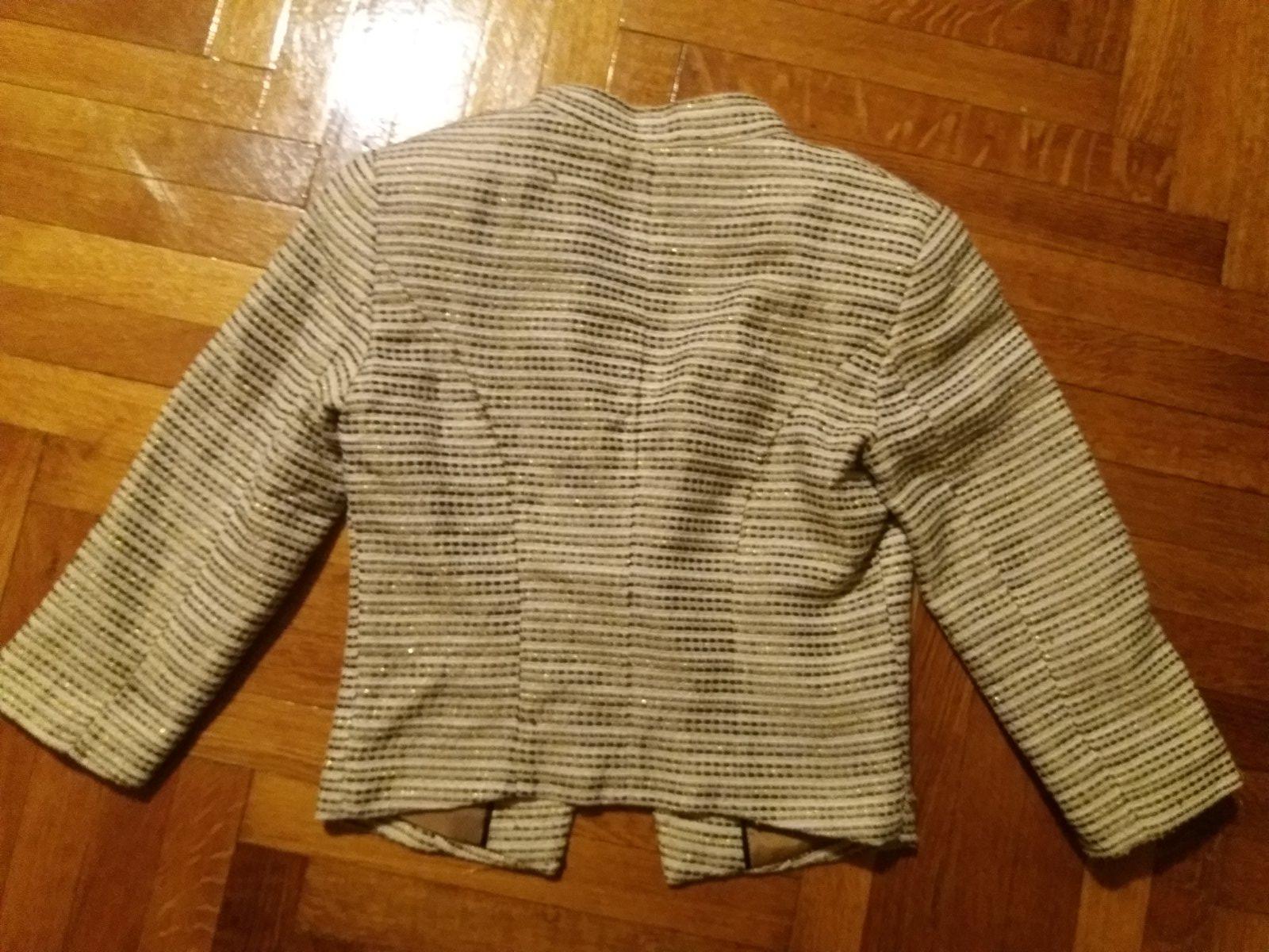 Pekny elegantny blejzer,maslovej farby,s podšivkou.super stav.100%polyester. se30 Rozmery: vel.34/36,cez prsia 2x45cm,cez pas 2x36cm,dl rukava od ramena 49cm,dl 53cm. Veľkosť: 34 Značk...