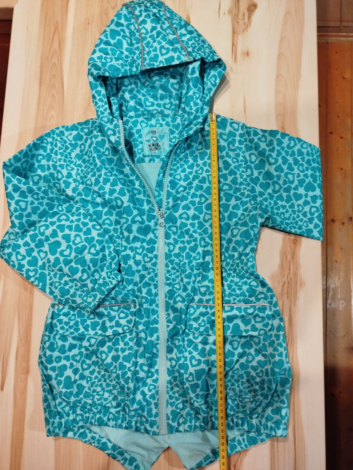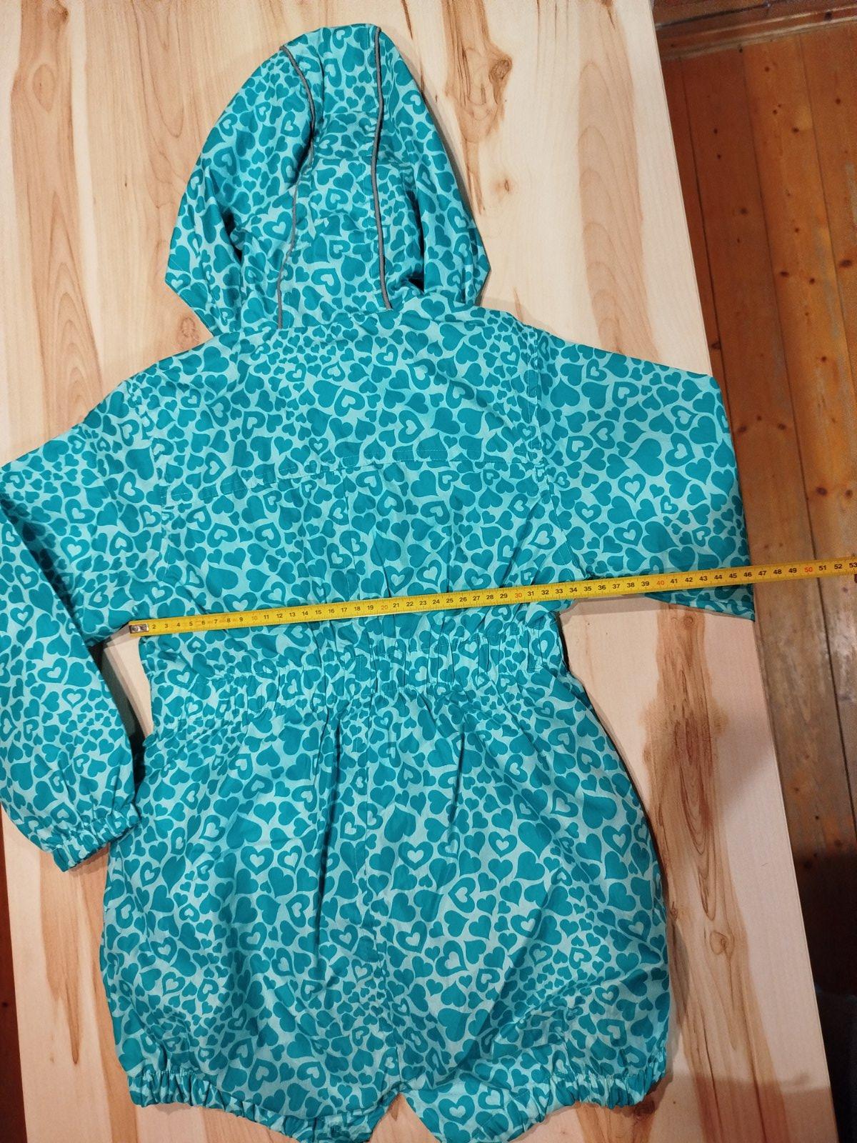 Tenšia vetrovka, na prechodné obdobie, podšitá bavlnenou tričkovinou, nosená, má zatrhnutie (vidieť na fotke), na ihrisko v pohode.