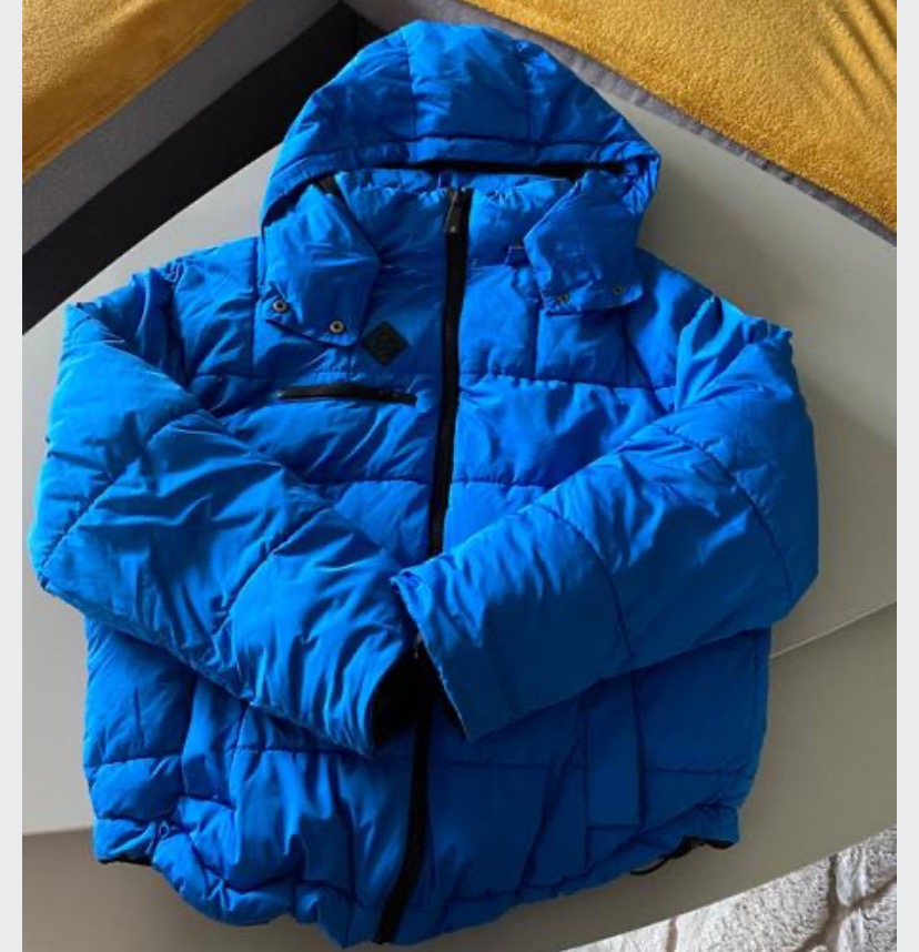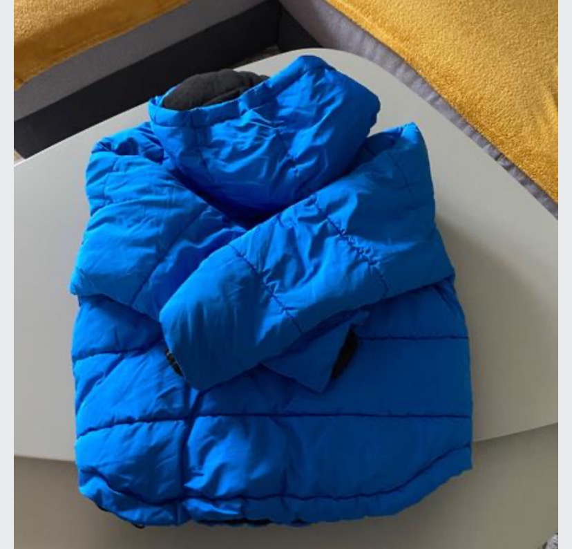 Teplá tmavomodrá bunda v námorníckom vzhľade. Prepracované vrecká aj kapucňa. Je vo výbornom stave. Stačí ju dať do čistiarne, okolo brady stopy od makeupu, inak top stav.