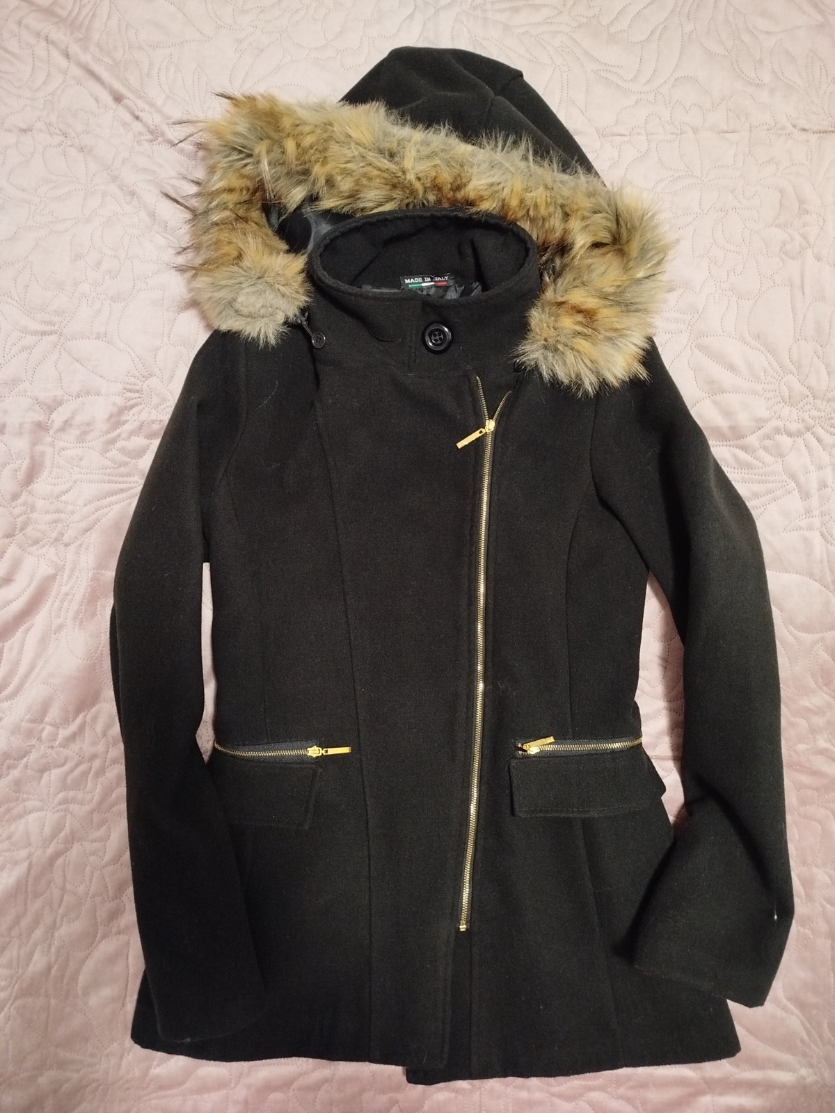 Krásny štýlový kabatik..kúpený koncom minulej zimy v Parndorfe za 360e..žiaľ mne je už maly..mala som ho na sebe 1x Skoda ho v skrini preto posuniem za rozumnú cenu, v prípade vážneho záujmu doho...