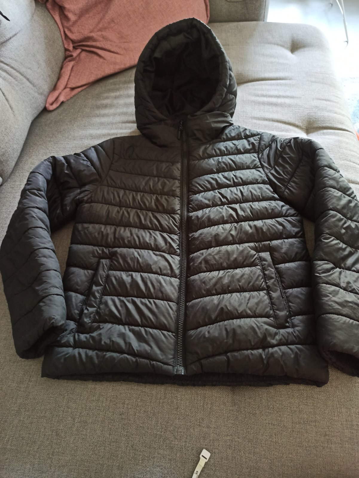Pekný nosený stav, bez poškodenia. Určite ešte dobre poslúži. Na fotkách mi to hádzalo takú divnú vyblednutú čiernu na niektorých miestach, ale v skutočnosti je to ucelená čierna.