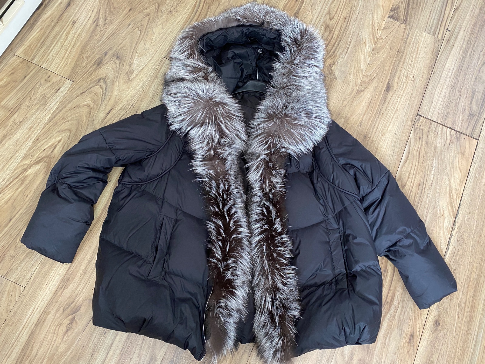 Dominantným prvkom je pravá líška na kapucni, ktorá dodáva bunde luxusný vzhľad a robí z nej výrazný módny kúsok. Oversize strih zaručuje pohodlie a trendy look, ktorý ľahko skombinuješ s akýmkoľvek outfitom – od športového až po mestský chic.