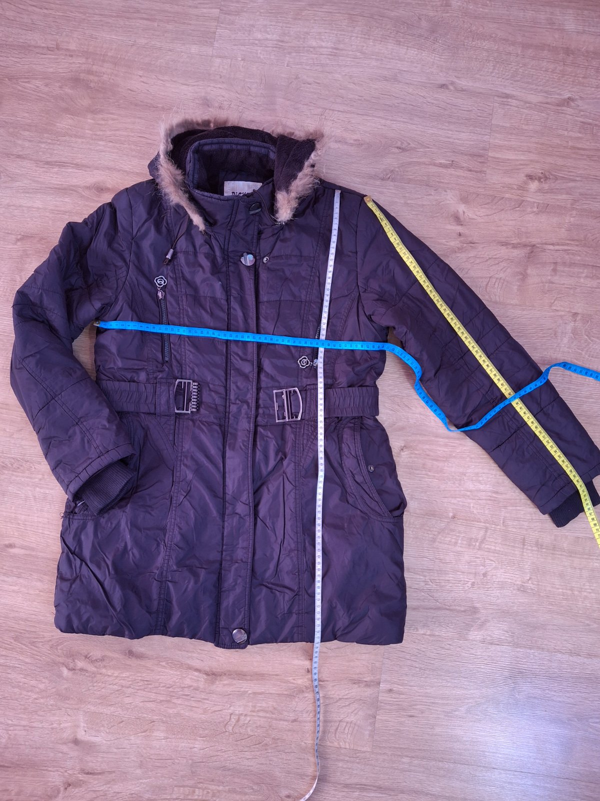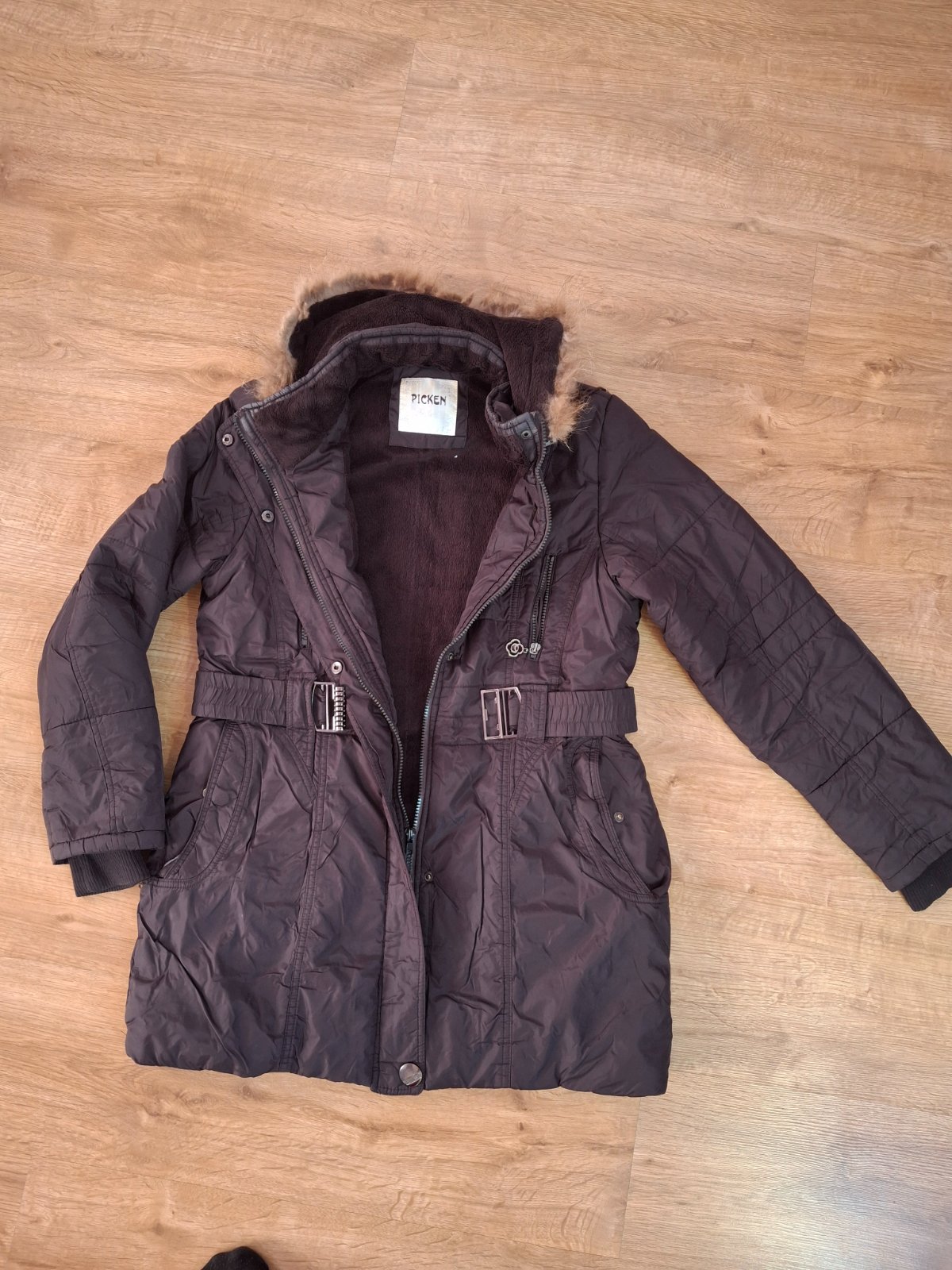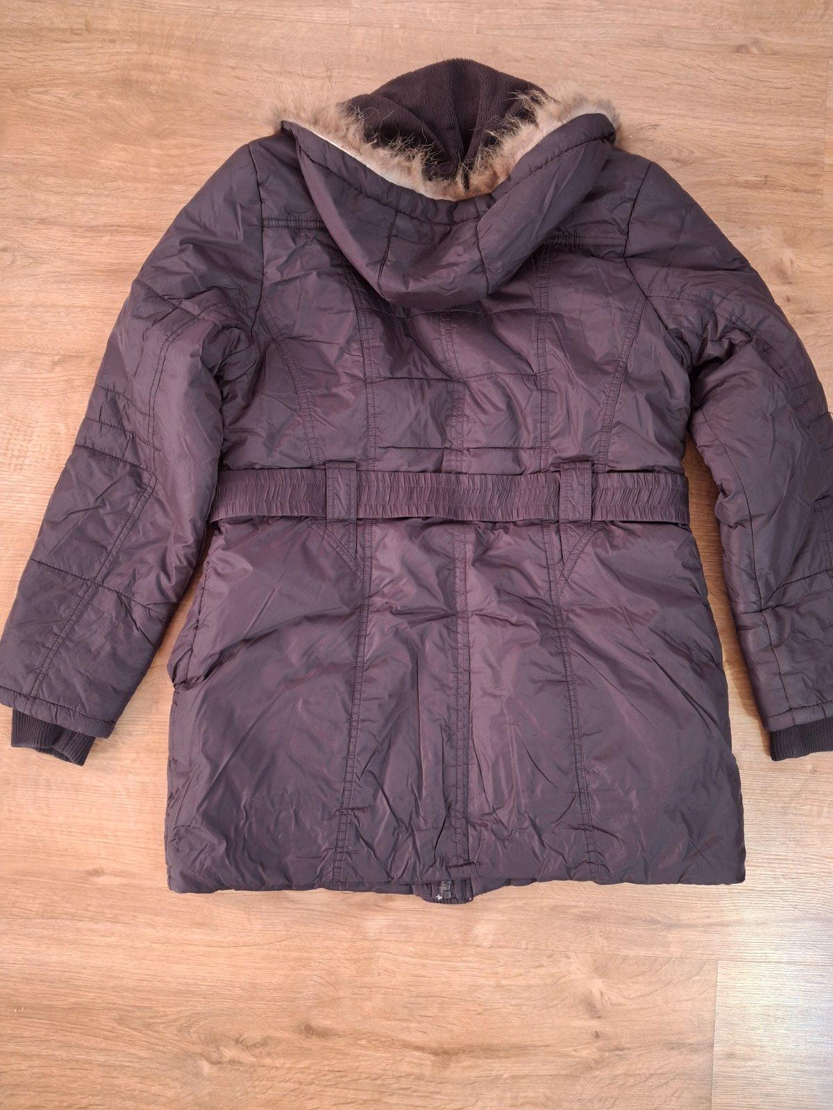 Nádherná dámska zimná bunda. Hnedá bunda. Bunda sa zapína na dvojitý zips. Má veľkú odopínateľnú kapucňu s krásnou, na dotyk príjemnou, odopínateľnou kožušinou. Dve veľké vrecká na zips sú ideálne ...