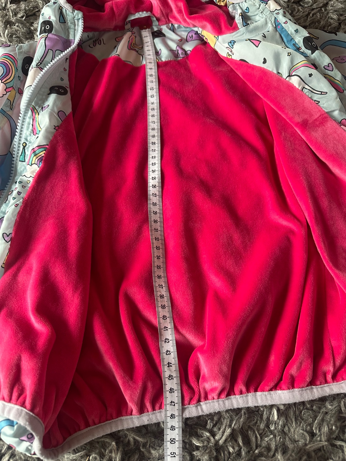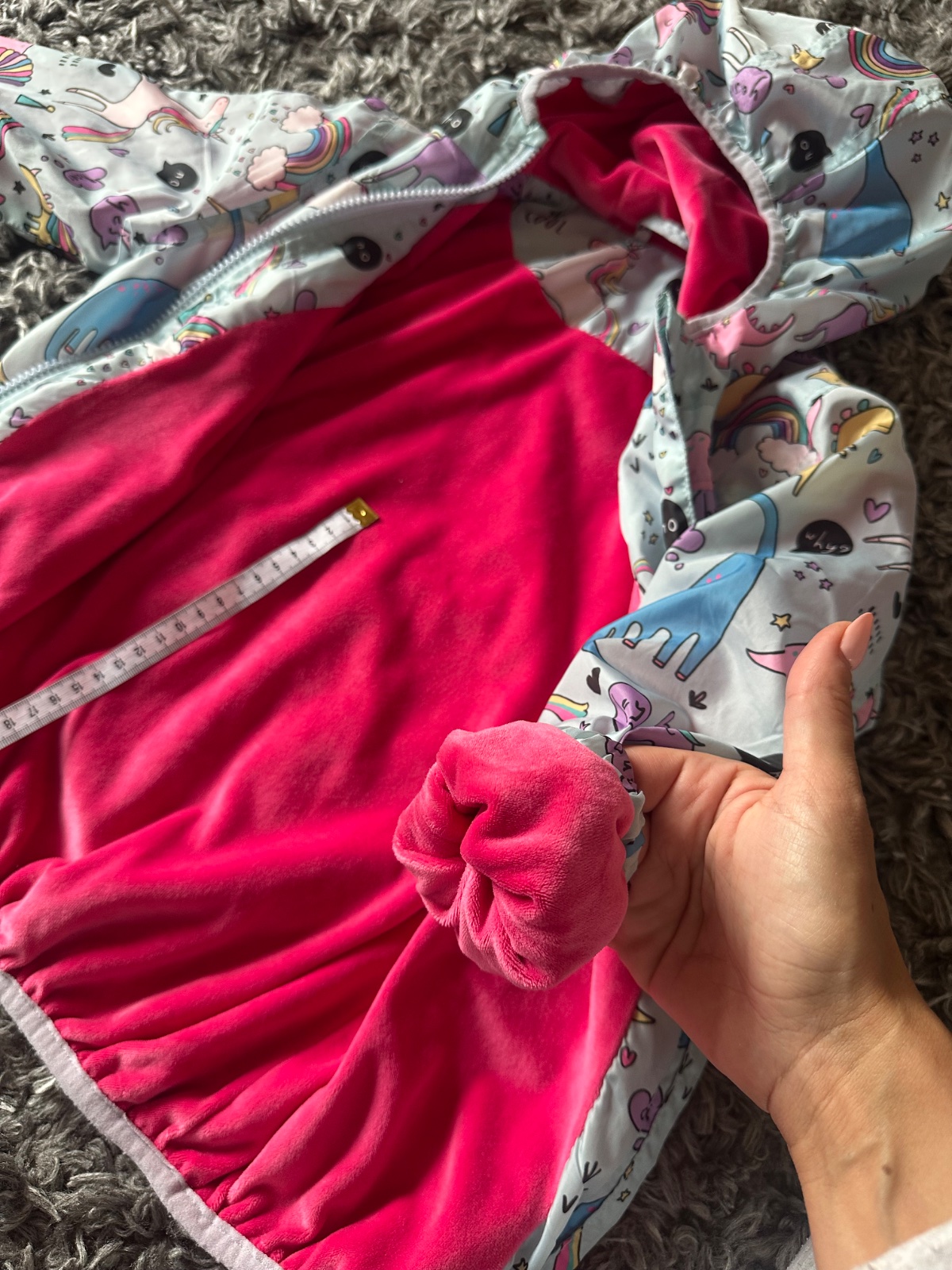 Jemne zateplená bunda, mám 2 ks, stav cca podobný u oboch. U nás to boli teda bundy na doma, kupované nové, nosené 2 sezóny (2 krat jar a 2 krat jesen), ale ostali vo veľmi peknom stave, bez fľakov, jednu musím trošku zošiť.