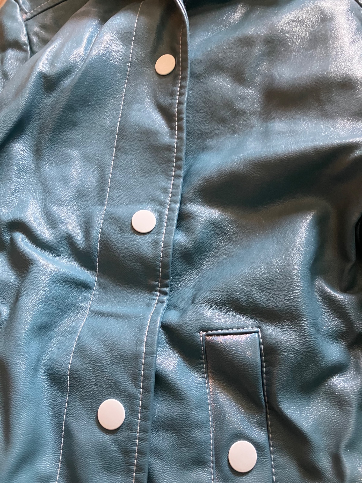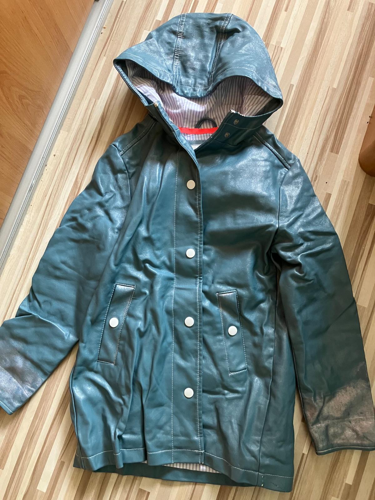 Jarná bunda s kapucňou, 2 predné vrecka, na 7-8 rokov, dlžka bundy 46cm, dĺžka rukavu od zošitia na ramene 47cm.