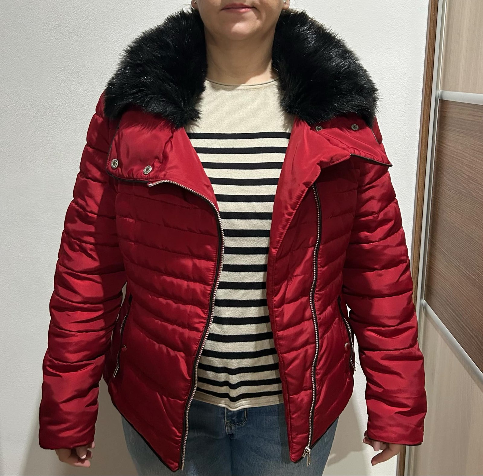 Bunda na zimu .pekná sýta červená farba . Mne veľká .Pc 50€ kupovania v takku minulý rok .rada premeriam