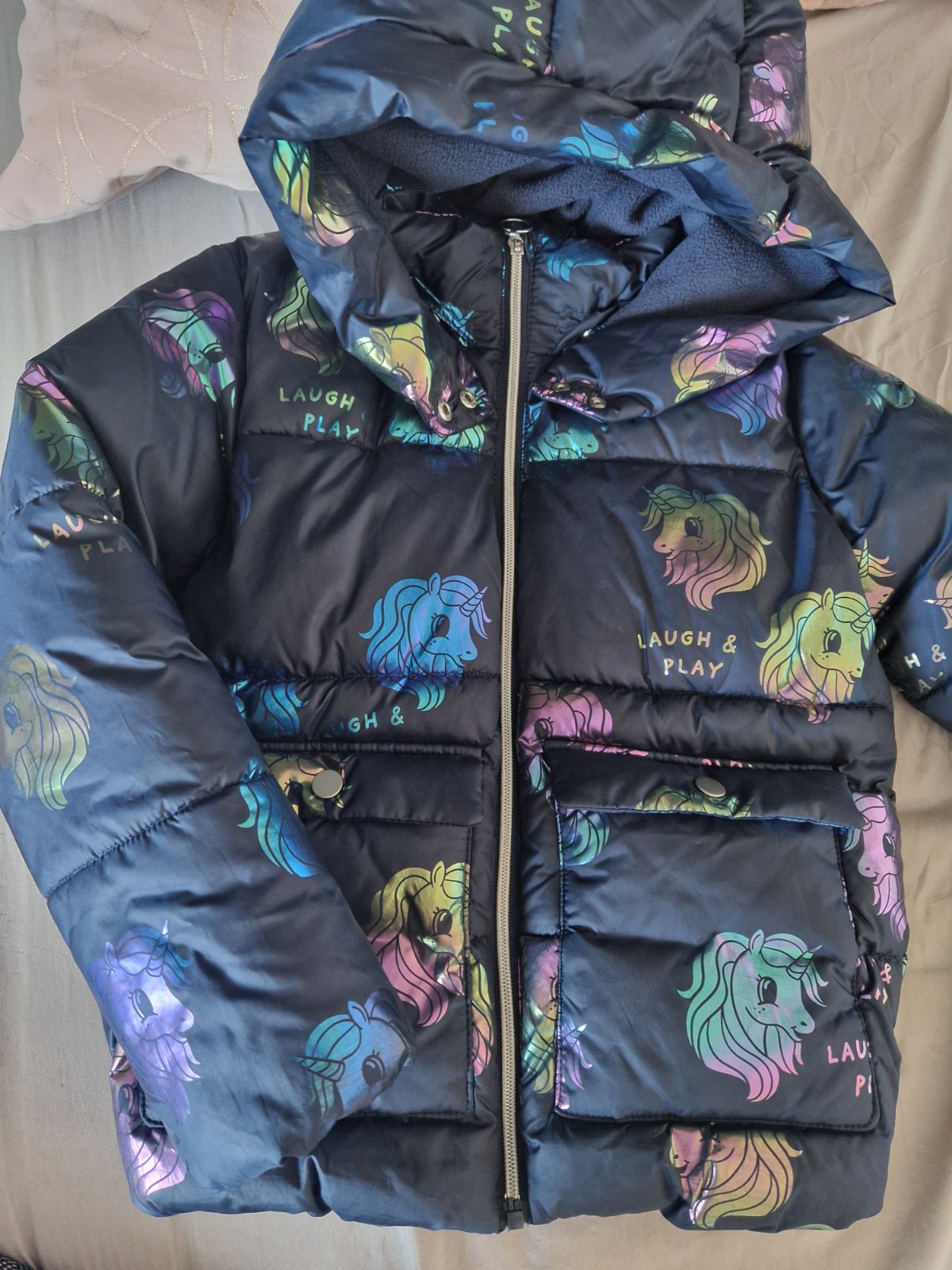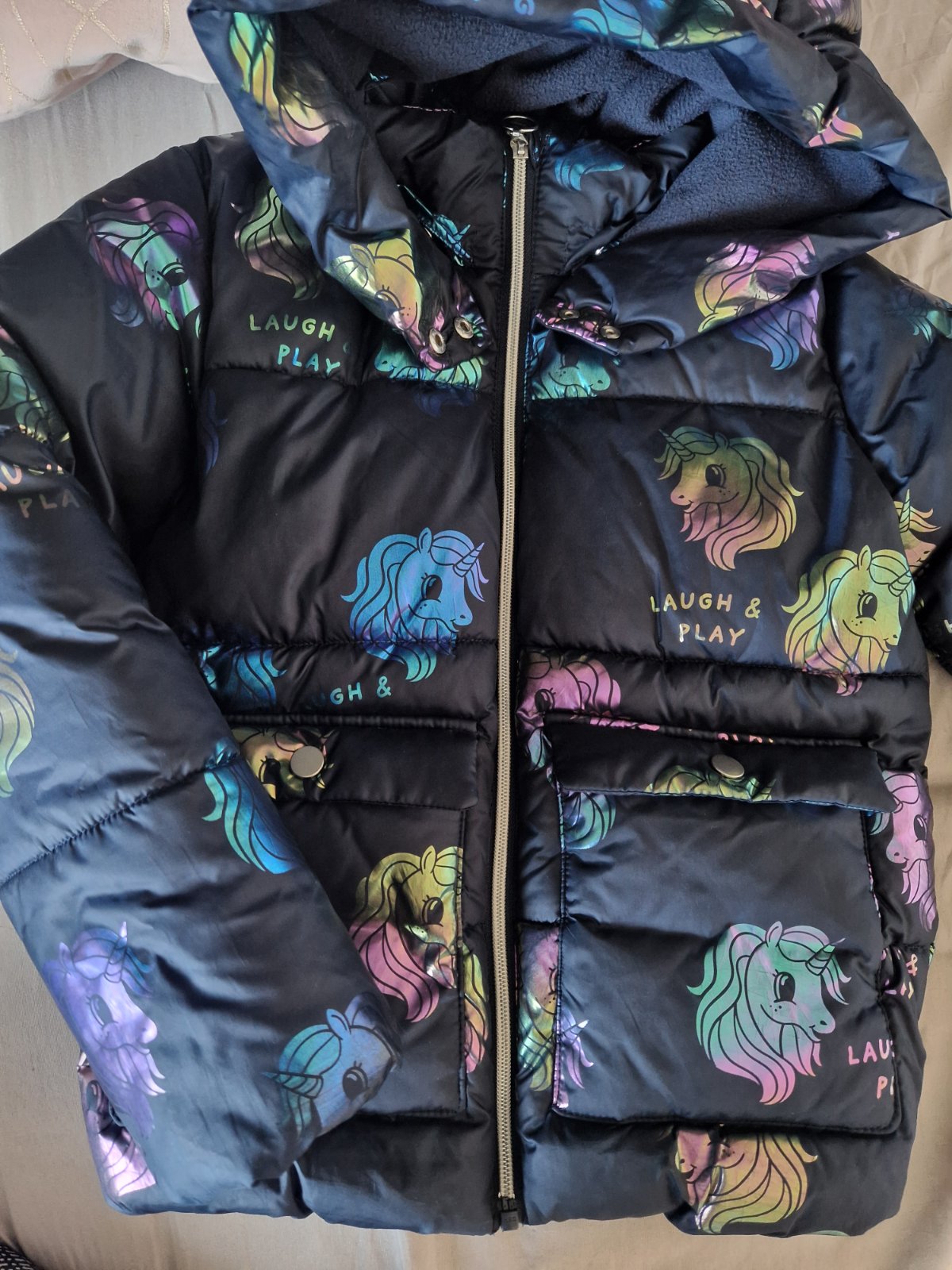 Zimná bundička,stav výborný, nosena 1 sezónu,striedana s inými,krajšia farba ako na foto, veľkosť 134
