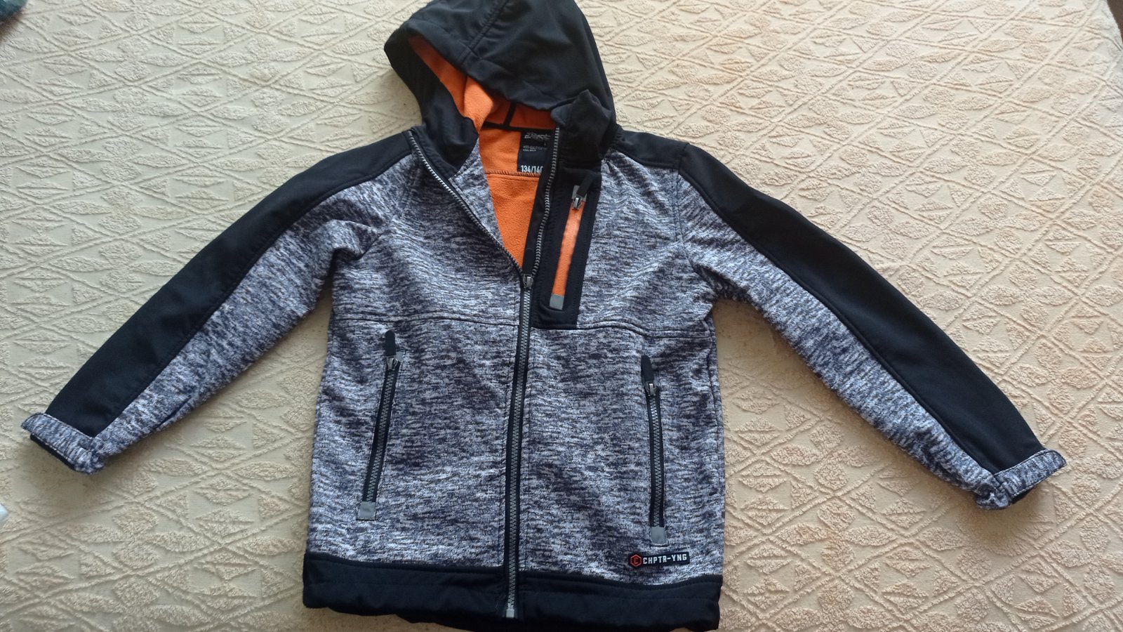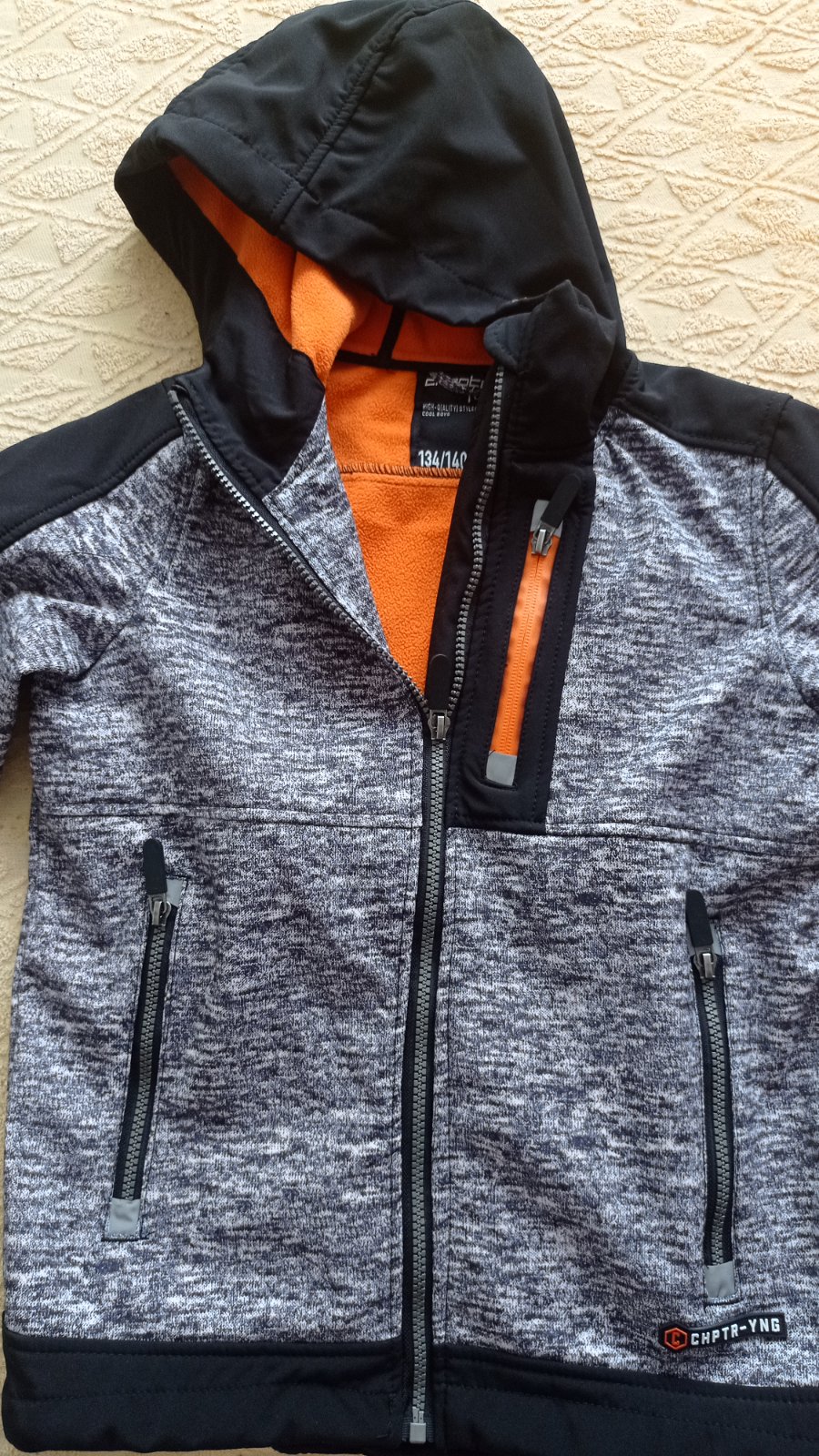 Štýlová prechodná zateplená vetrovka zn. Chapter Young, veľ.134. Ideálna na jarné/jesenné obdobie. Praktická farba, ľahká údržba, štýlový design. Perfektne poslúžila. Zachovalý stav.