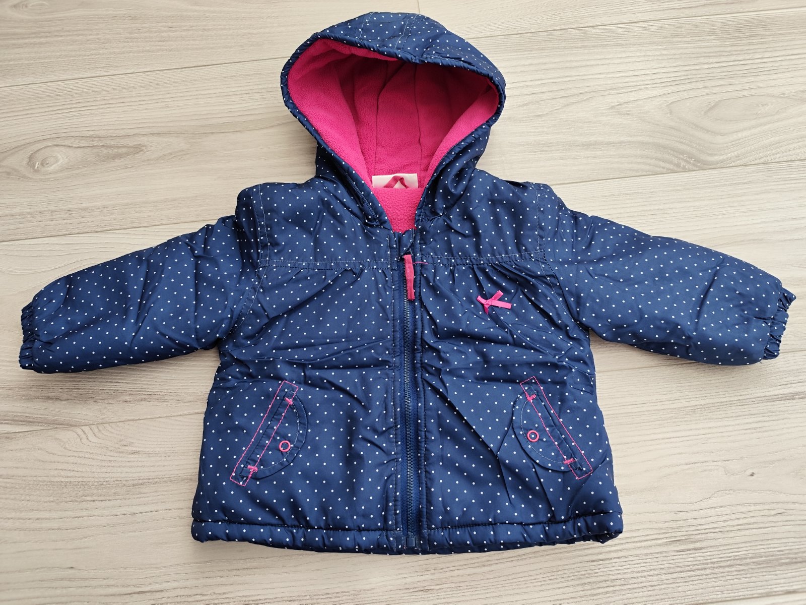 Detska zateplena vetrovka vel 80, zvnutra podsite teplym flisom vrecka vpredu iba imitacia, zateplena kapucna